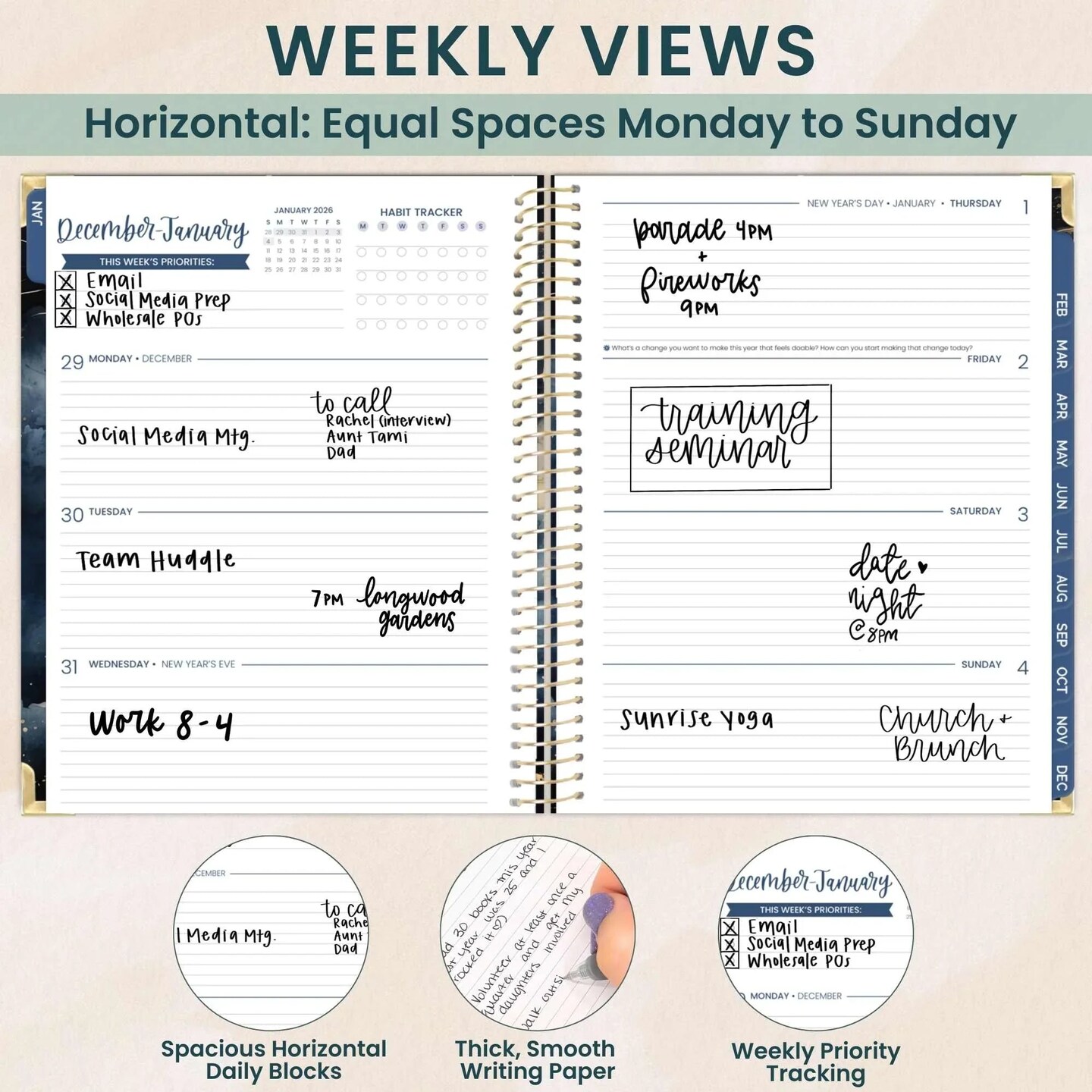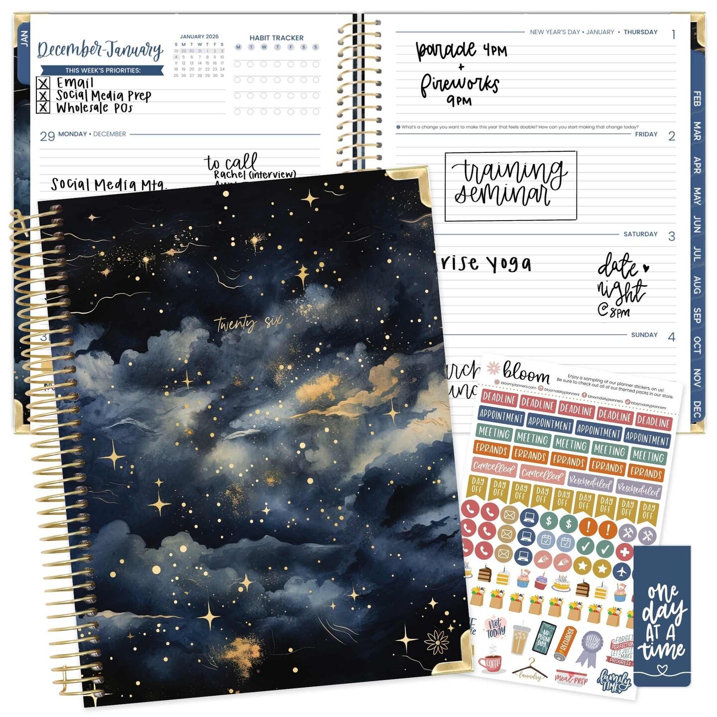 bloom daily planners 2026 Hard Cover Weekly & Monthly Planner, 8.5" x 11", Midnight Sky