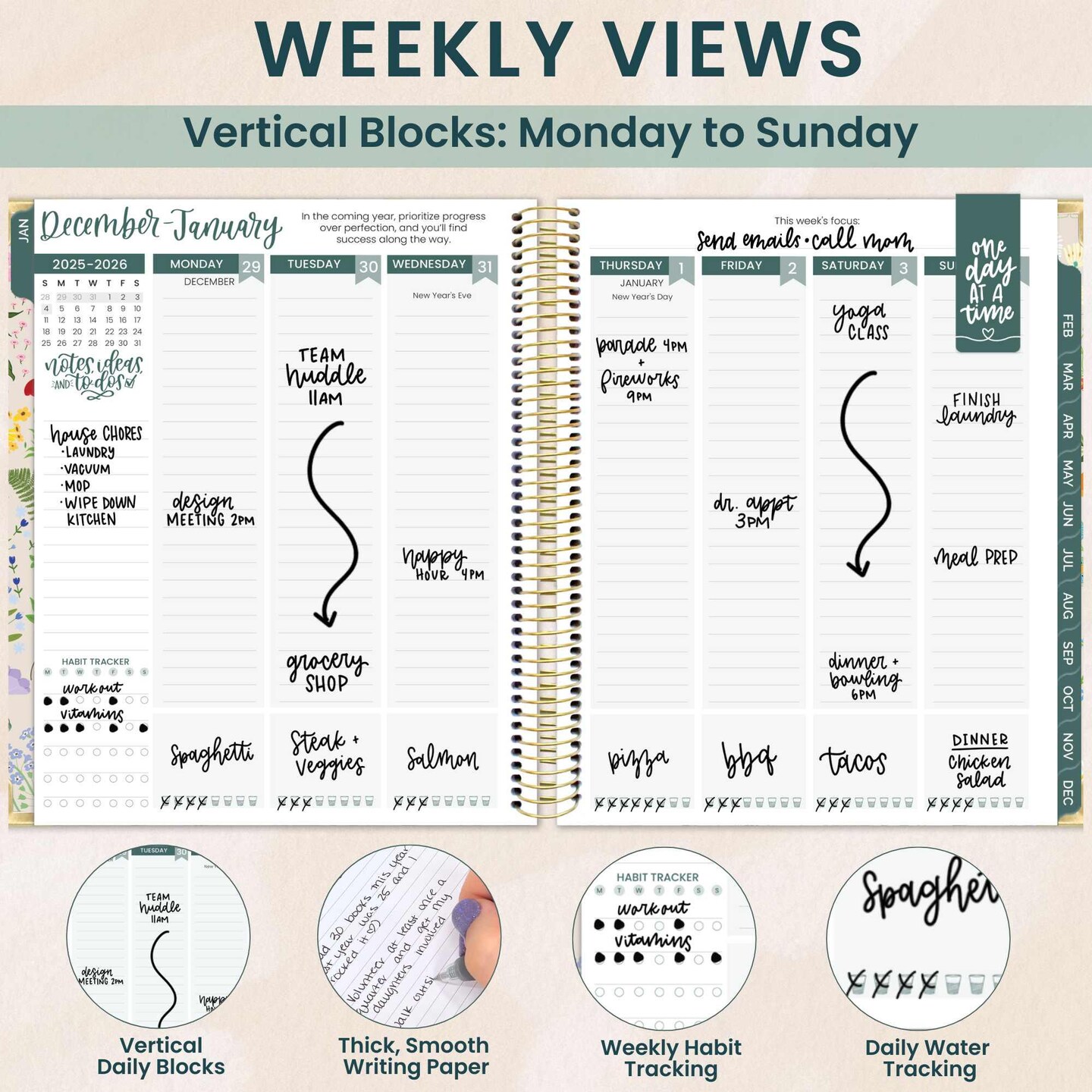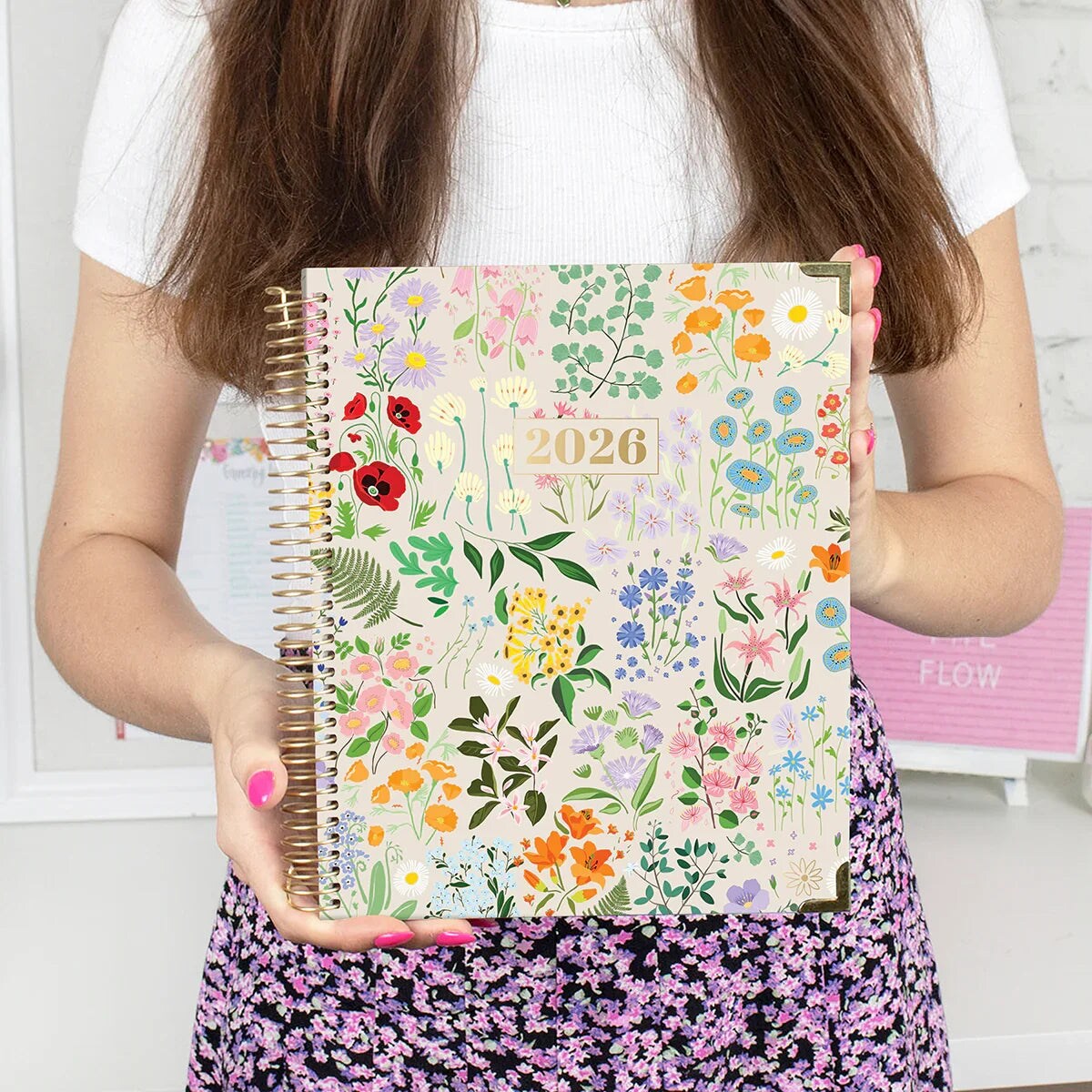 bloom daily planners 2026 Hard Cover Weekly & Monthly Vision Planner, 7.5" x 9", Garden Party, Beige