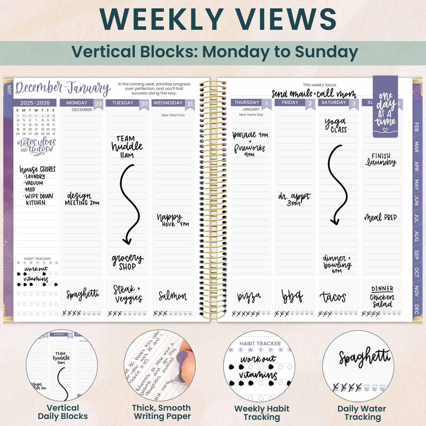 bloom daily planners 2026 Hard Cover Weekly & Monthly Vision Planner, 7.5" x 9", Good Things Are Coming