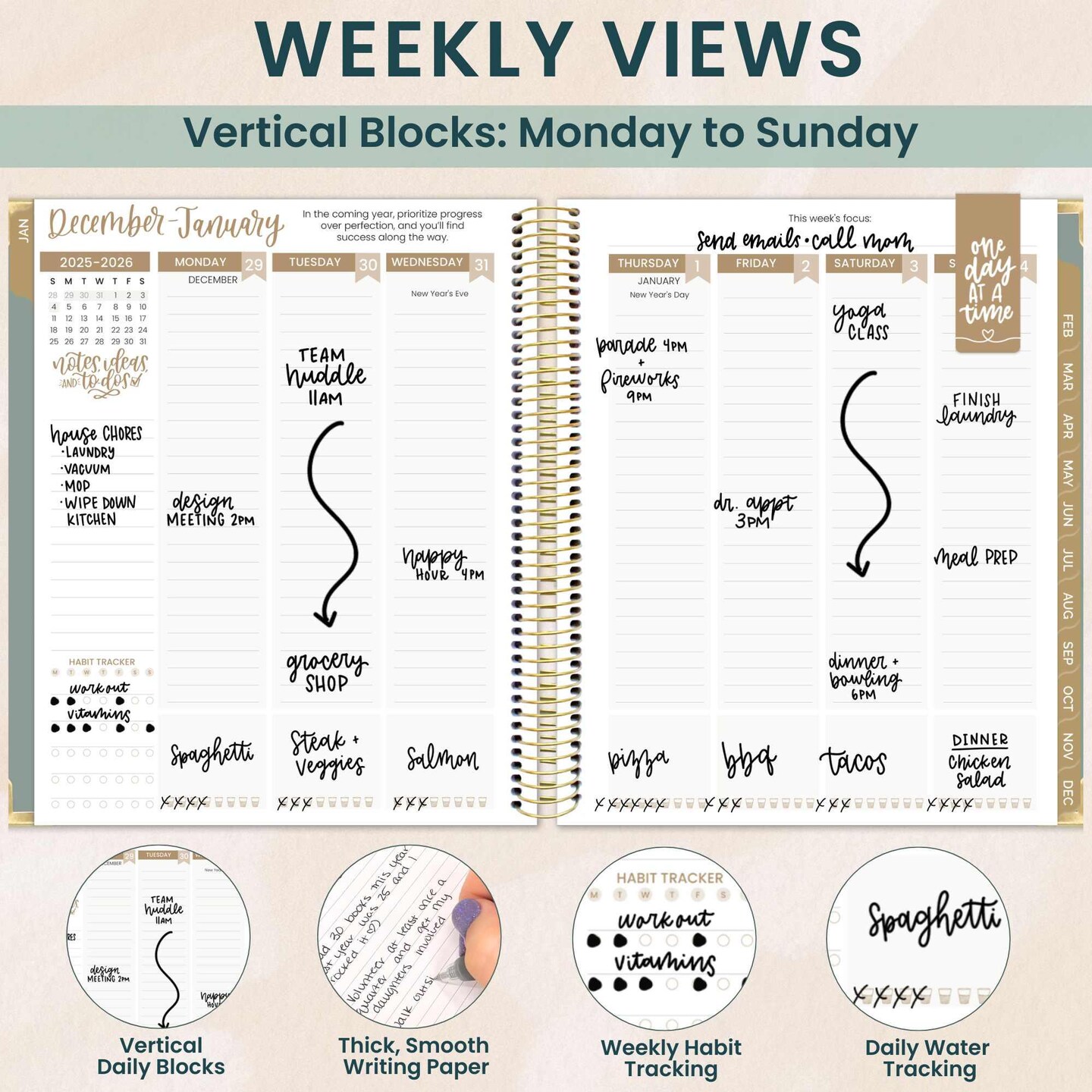 bloom daily planners 2026 Hard Cover Weekly & Monthly Vision Planner, 7.5" x 9", Green Linen