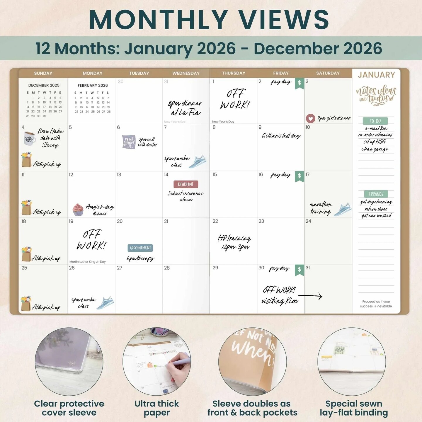bloom daily planners 2026 Monthly Planner, 9" x 12", Gold Floral Stamp
