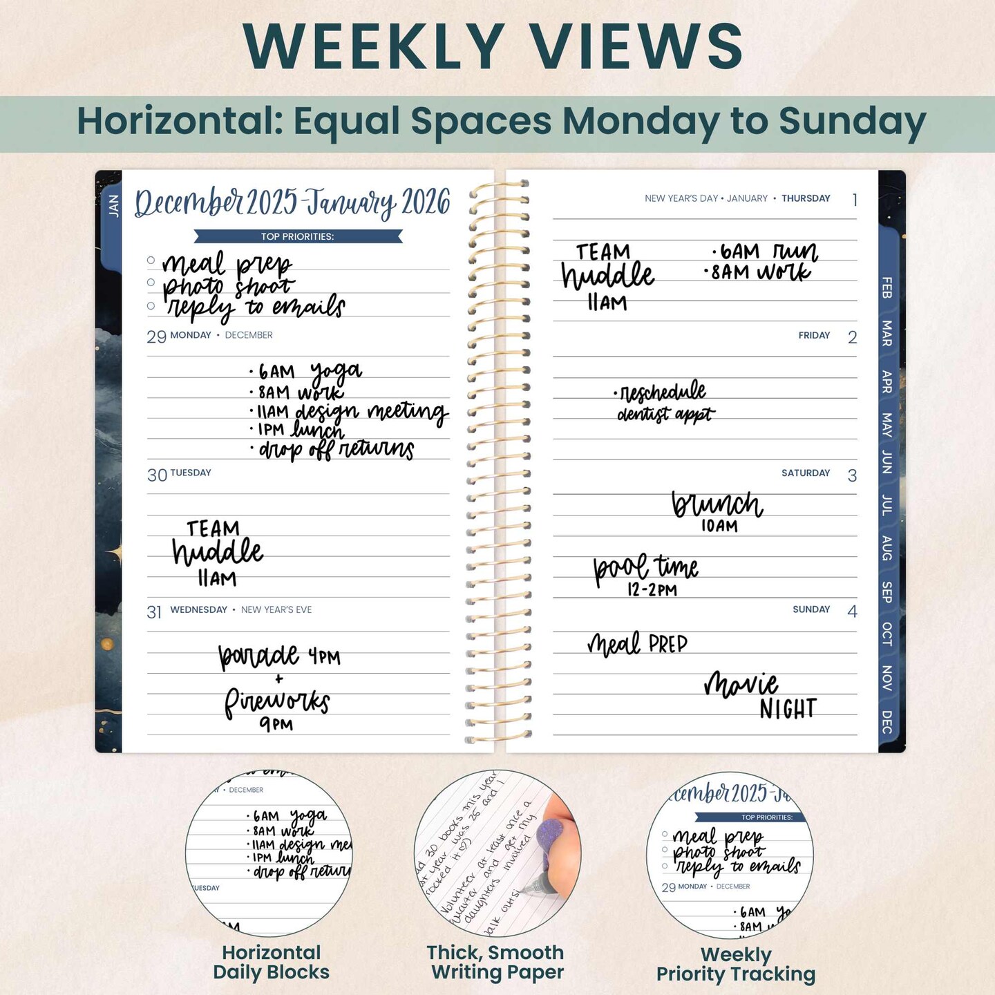 bloom daily planners 2026 Soft Cover Weekly & Monthly Planner, 4" x 6", Midnight Sky