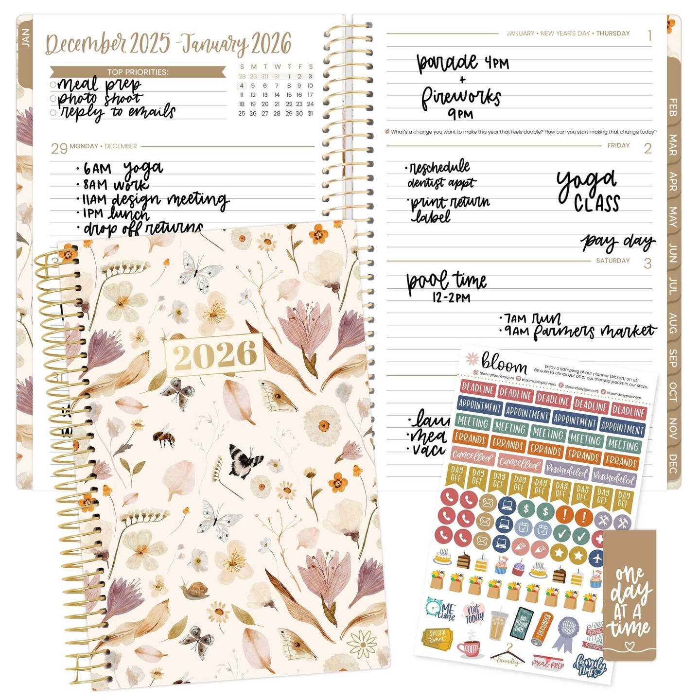 bloom daily planners 2026 Soft Cover Weekly & Monthly Planner, 5.5" x 8.25", Butterfly Garden
