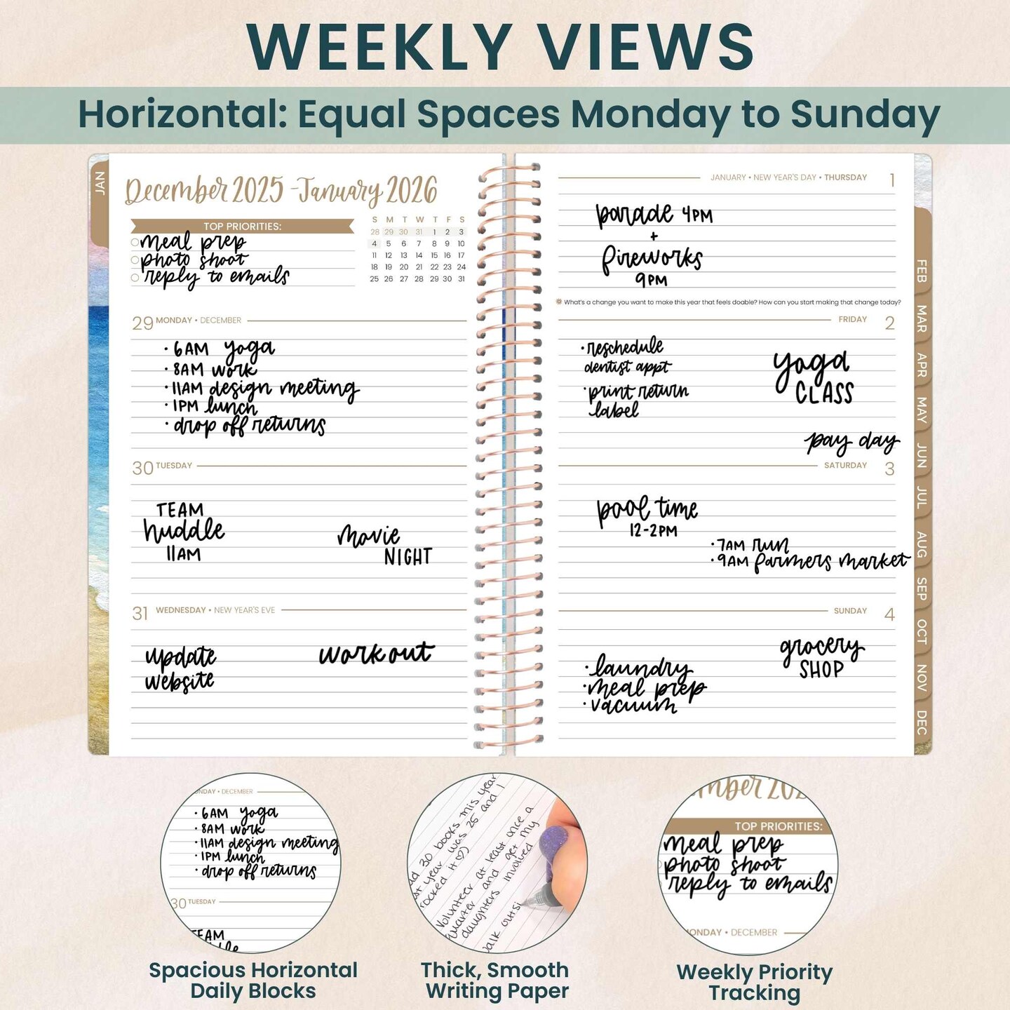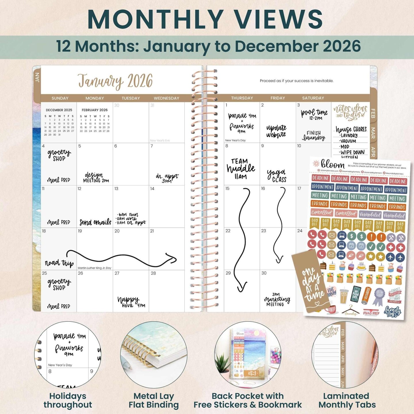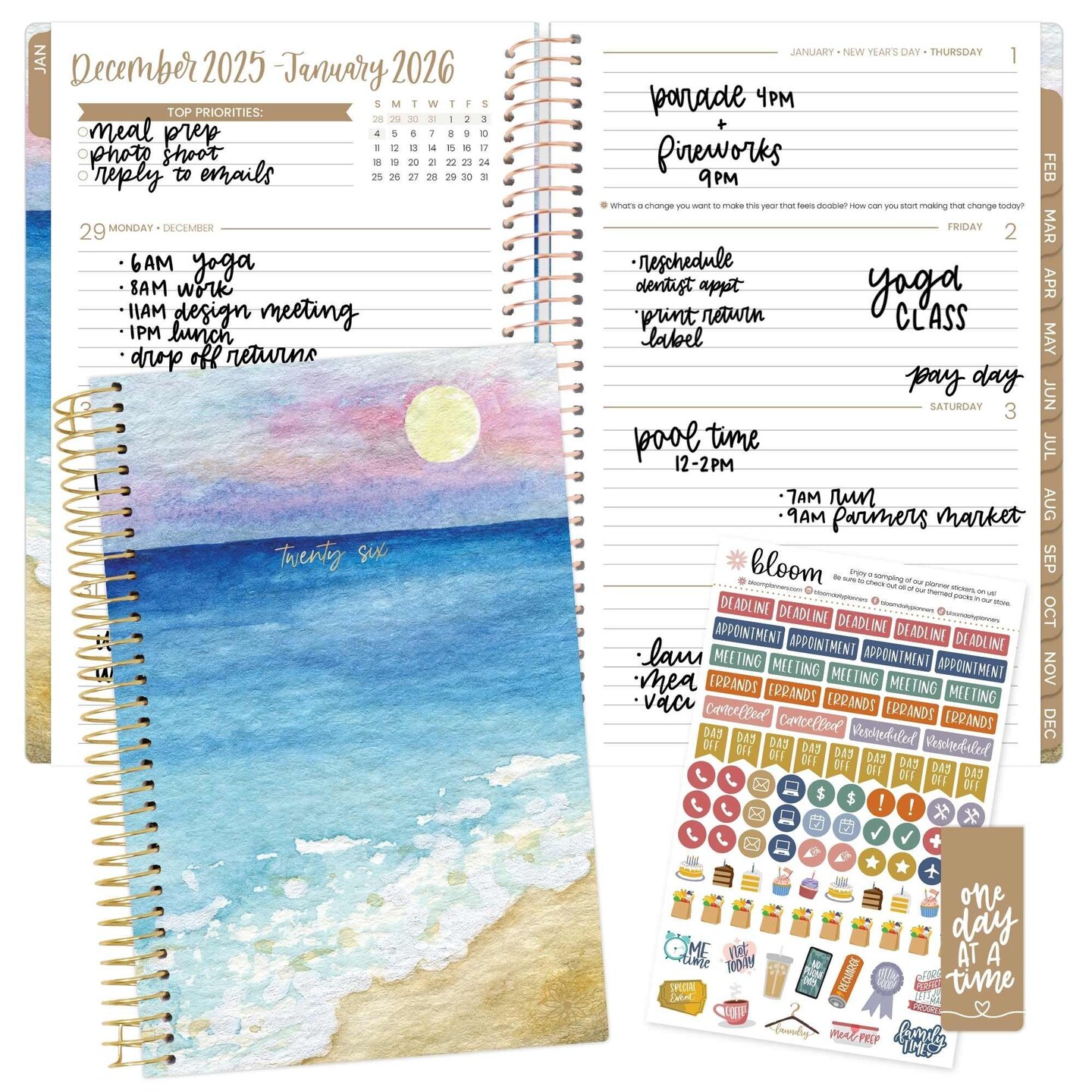 bloom daily planners 2026 Soft Cover Weekly & Monthly Planner, 5.5" x 8.25", Coastal Calm