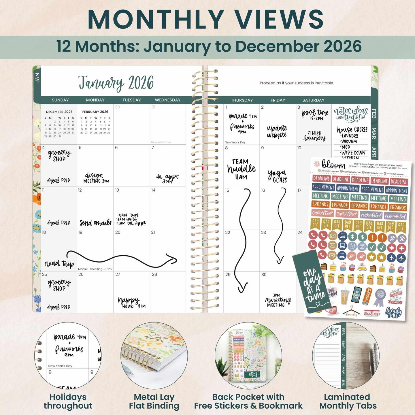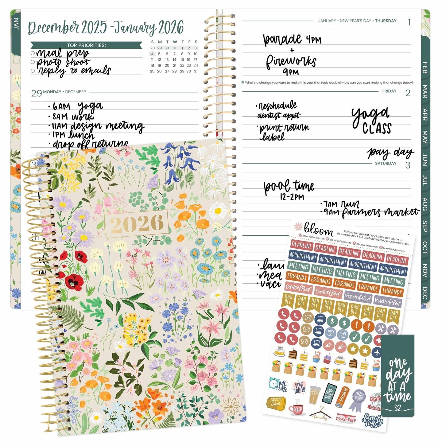 bloom daily planners 2026 Soft Cover Weekly & Monthly Planner, 5.5" x 8.25", Garden Party, Beige