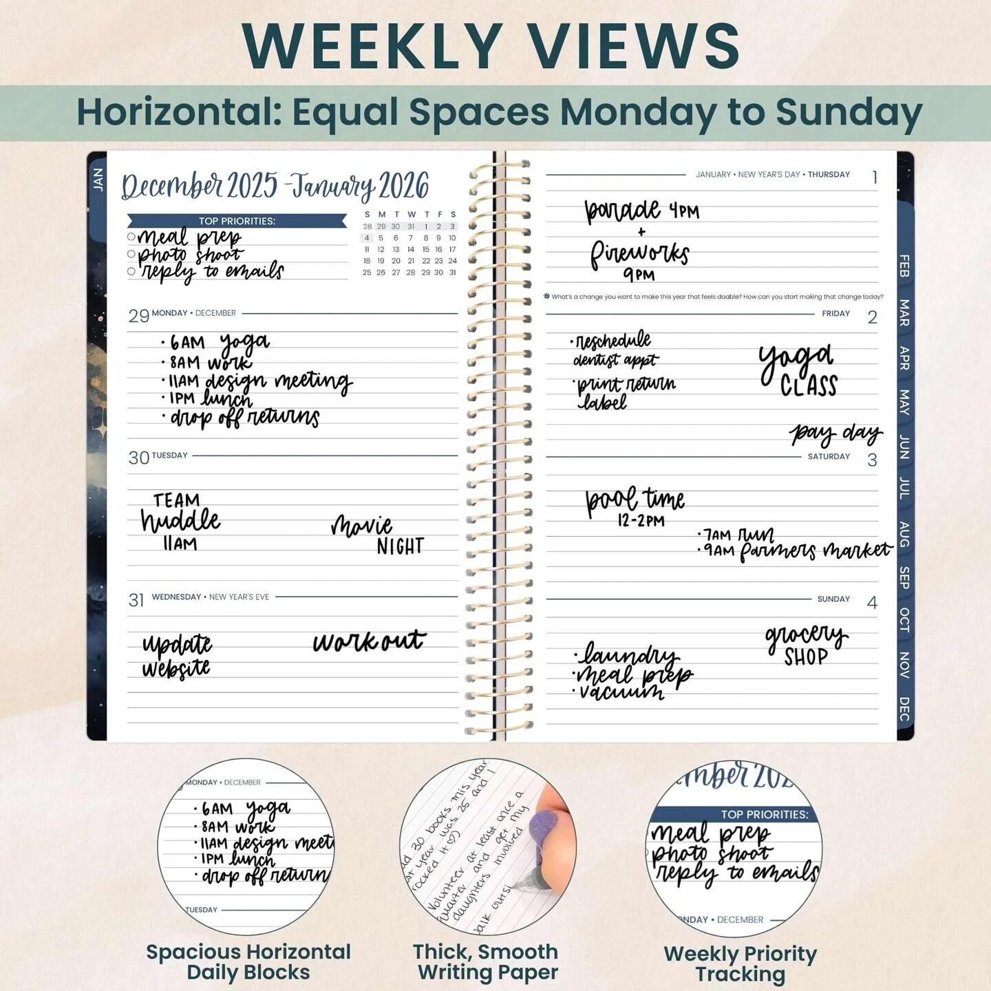 bloom daily planners 2026 Soft Cover Weekly & Monthly Planner, 5.5" x 8.25", Midnight Sky