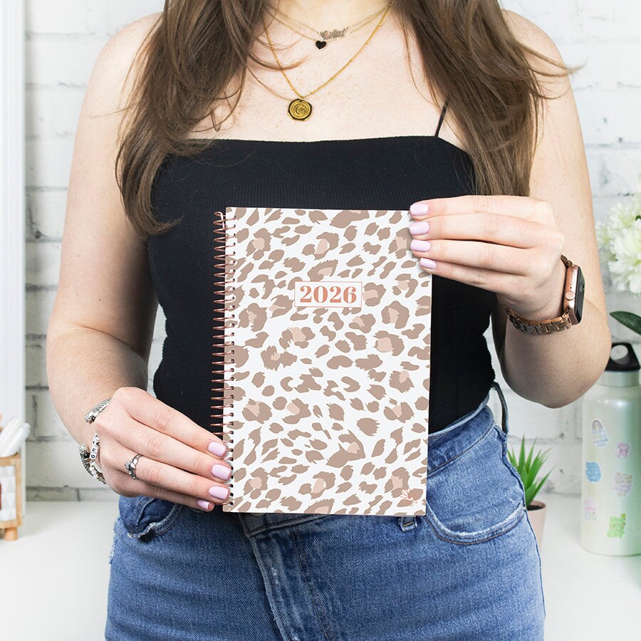 bloom daily planners 2026 Soft Cover Weekly & Monthly Planner, 5.5" x 8.25", Tan Leopard