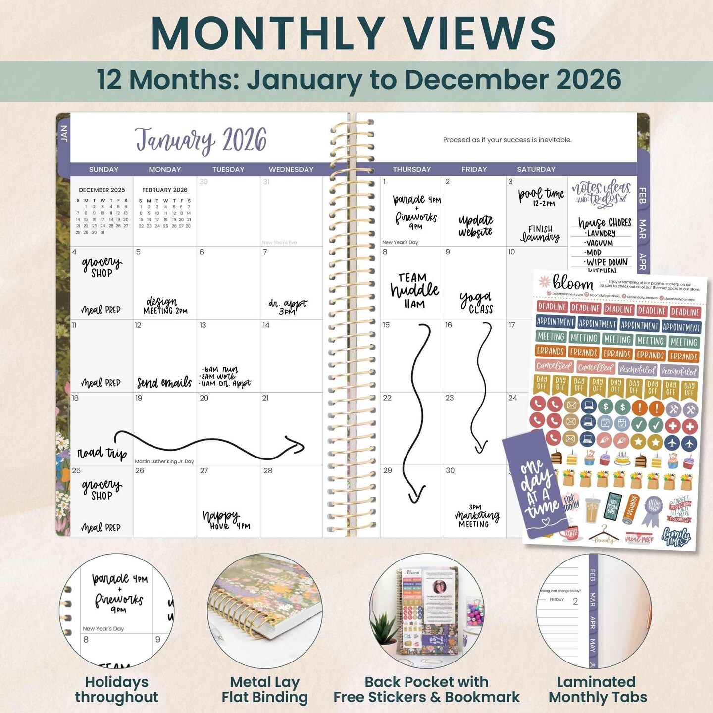 bloom daily planners 2026 Soft Cover Weekly & Monthly Planner, 5.5" x 8.25", Wildflower Mountainside