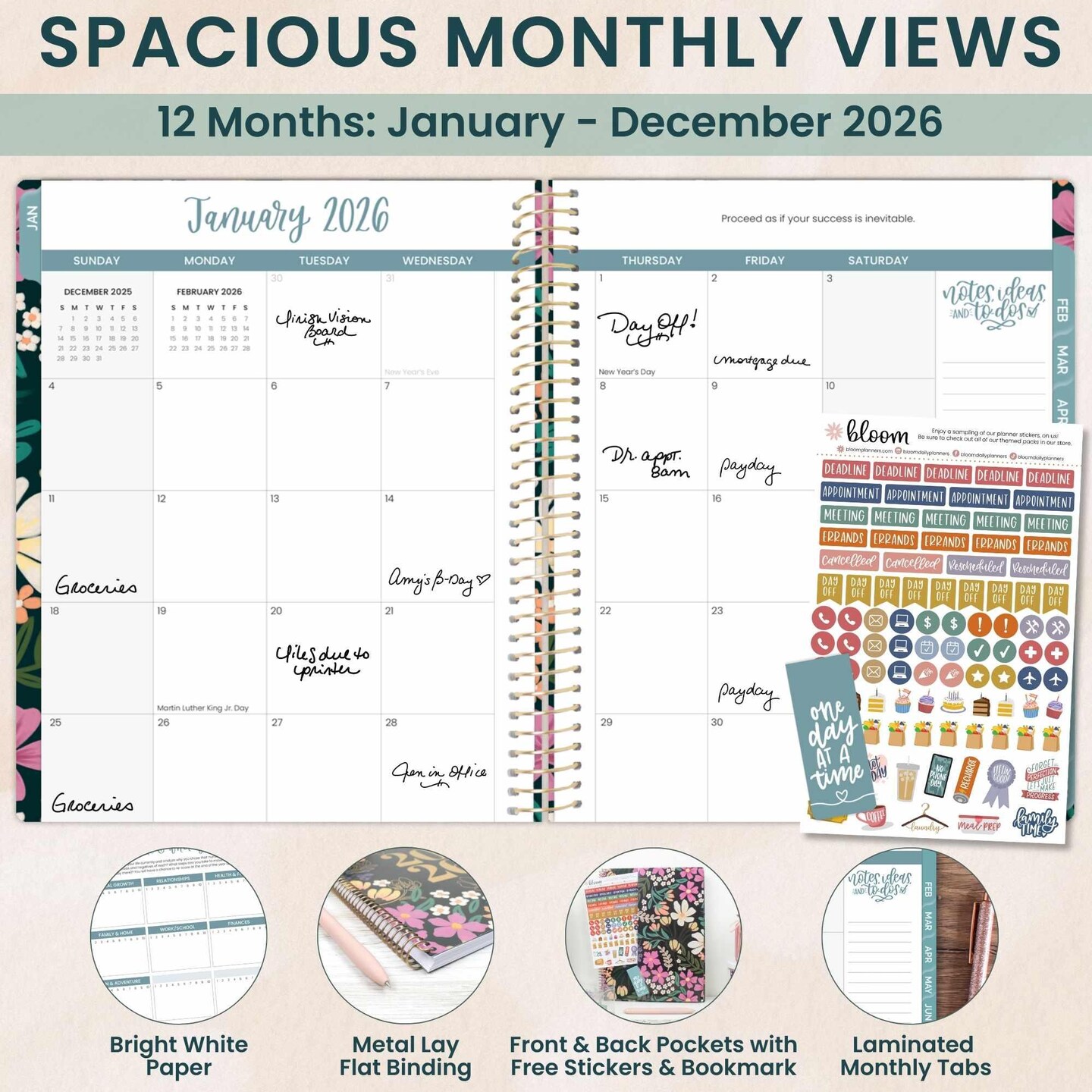 bloom daily planners 2026 Soft Cover Weekly & Monthly Planner, 8.5" x 11", Blooming Wildly