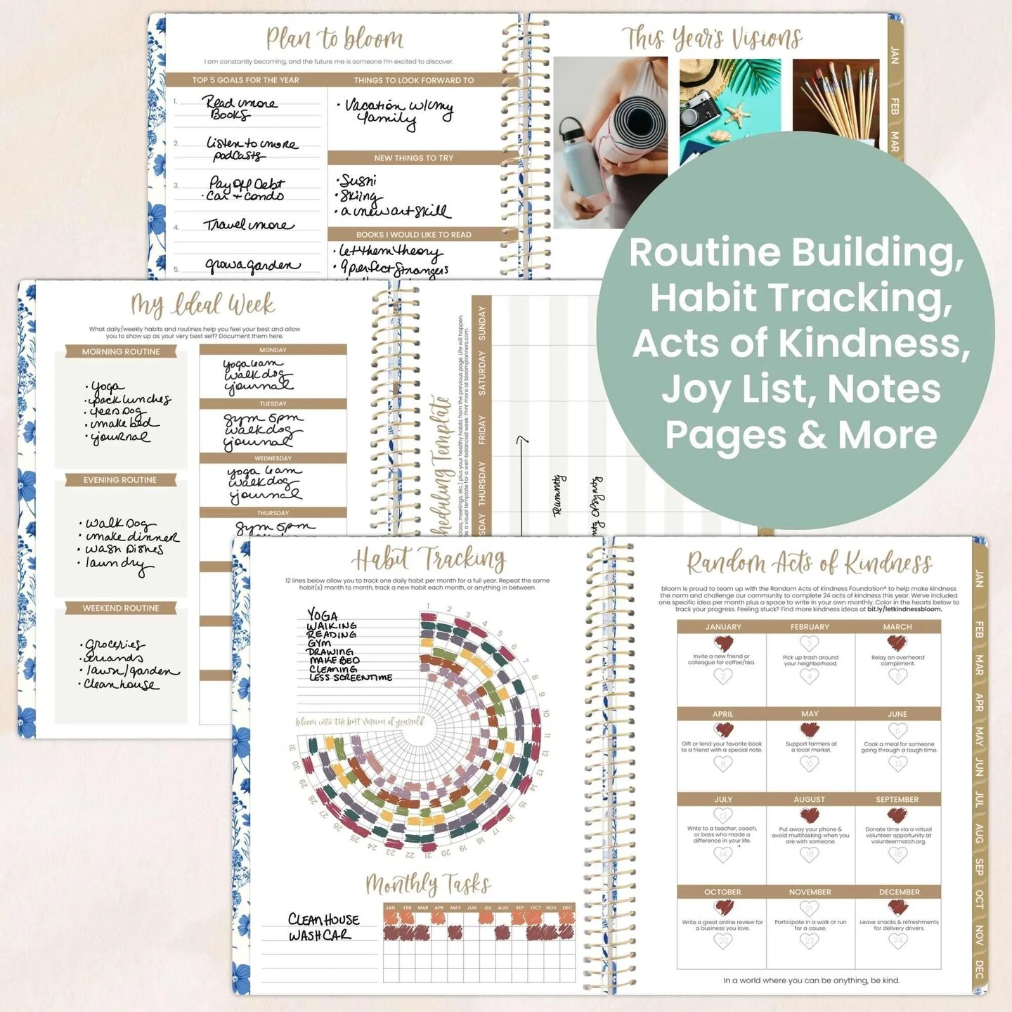 bloom daily planners 2026 Soft Cover Weekly & Monthly Planner, 8.5" x 11", Blue & White Floral
