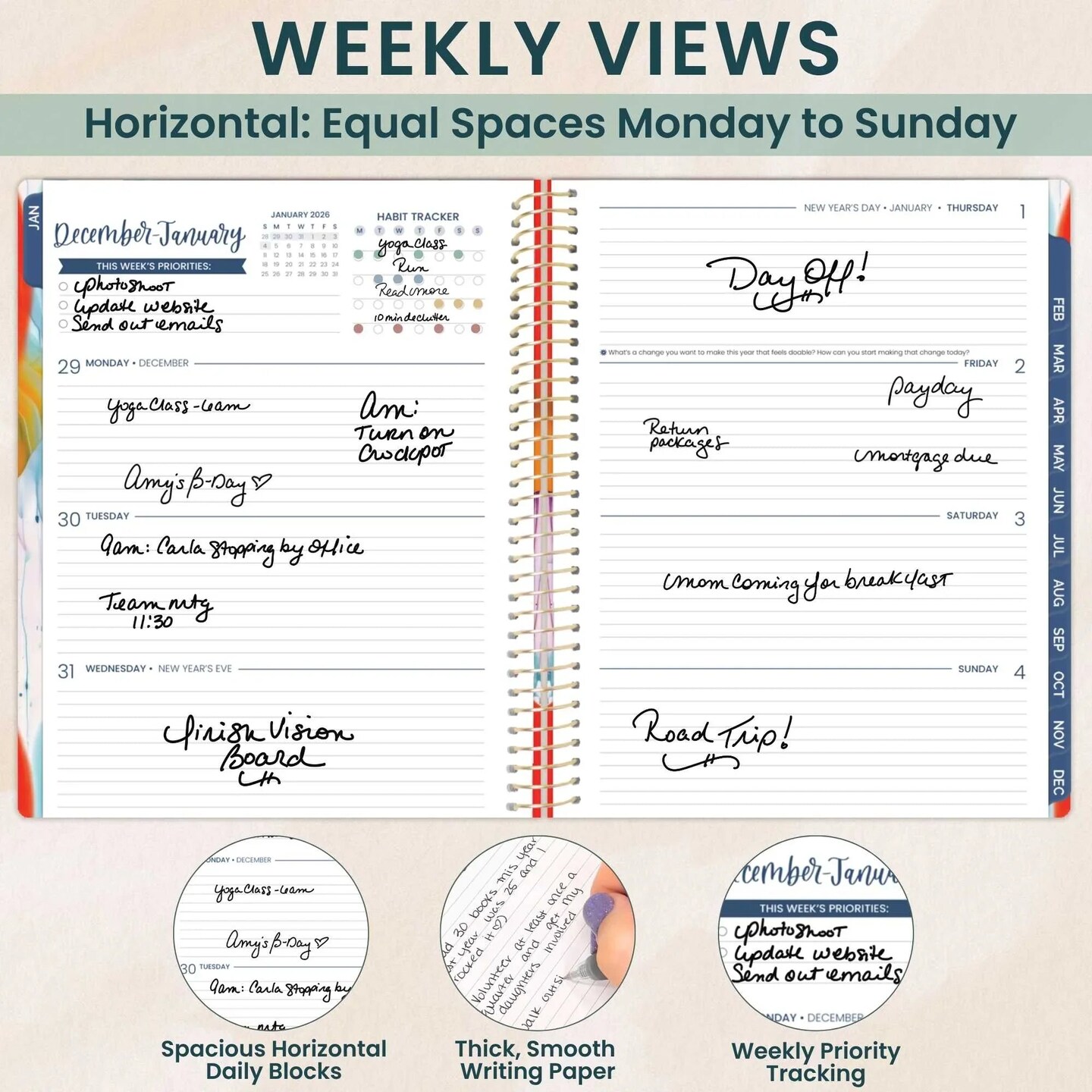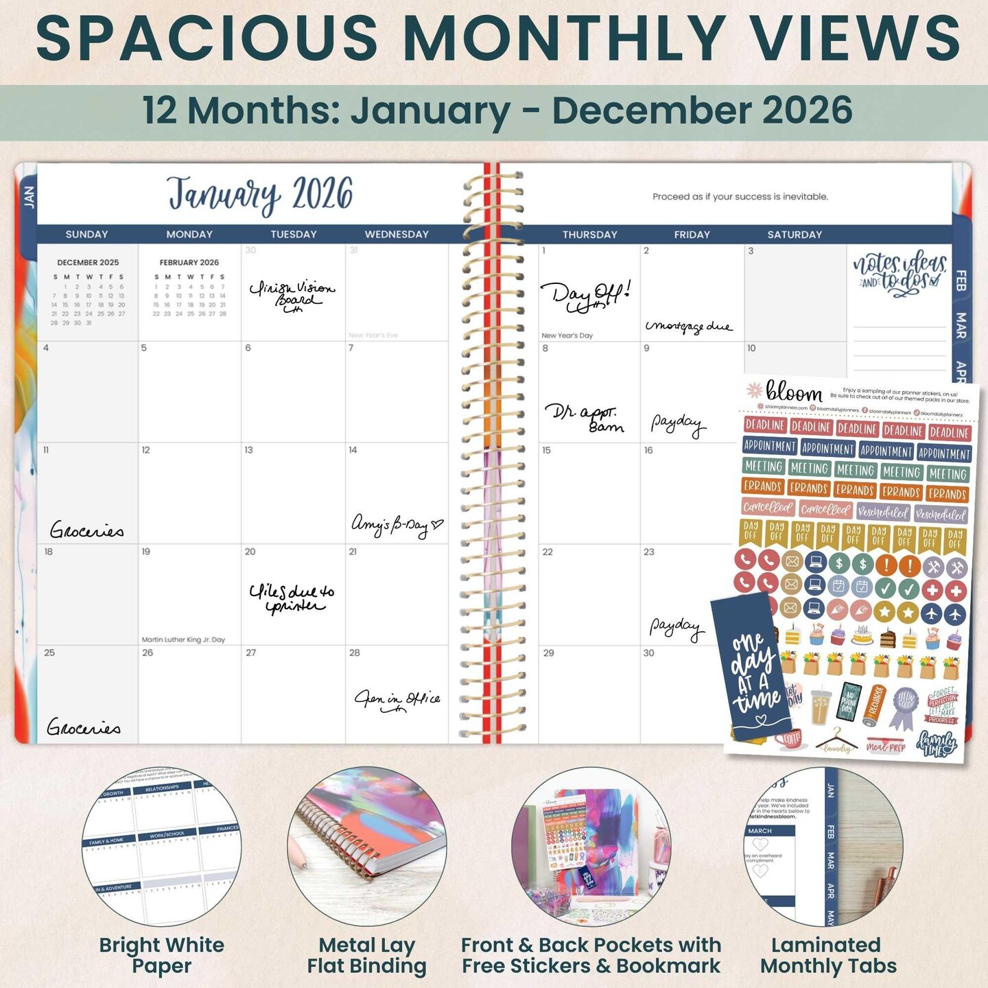 bloom daily planners 2026 Soft Cover Weekly & Monthly Planner, 8.5" x 11", Brilliant Brushstrokes