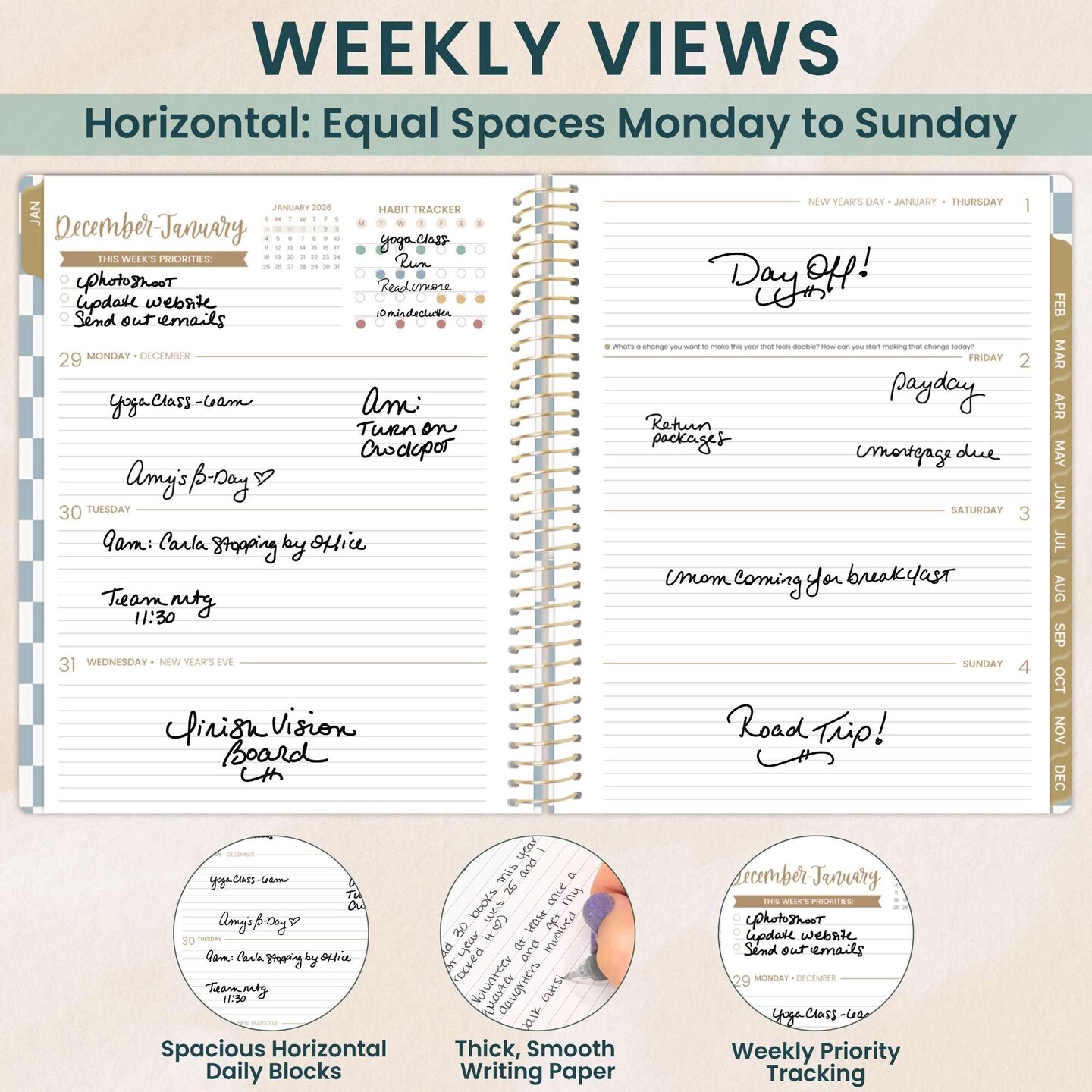 bloom daily planners 2026 Soft Cover Weekly & Monthly Planner, 8.5" x 11", Checkered