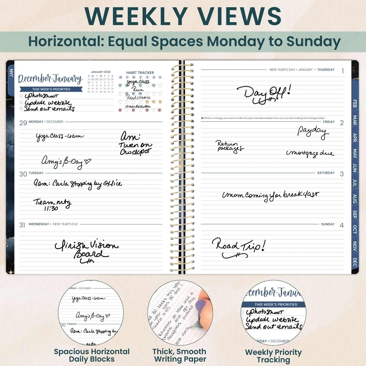 bloom daily planners 2026 Soft Cover Weekly & Monthly Planner, 8.5" x 11", Midnight Sky