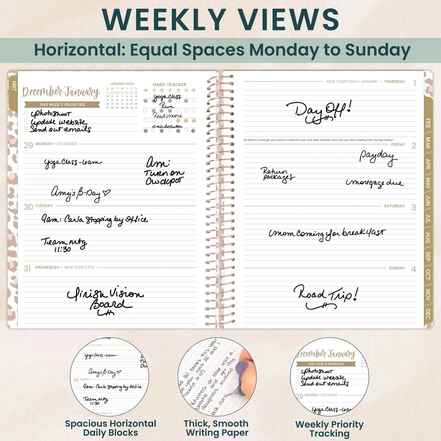 bloom daily planners 2026 Soft Cover Weekly & Monthly Planner, 8.5" x 11", Tan Leopard
