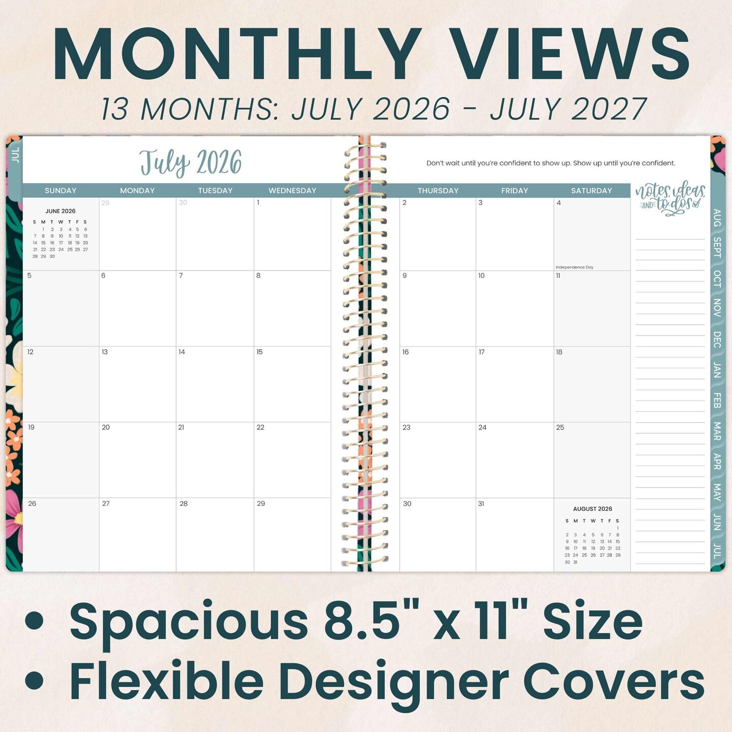 bloom daily planners 2026-2027 Academic Planner, 13 Month Soft Cover Monthly & Weekly, 8.5" x 11", Stickers Included, Blooming Wildly