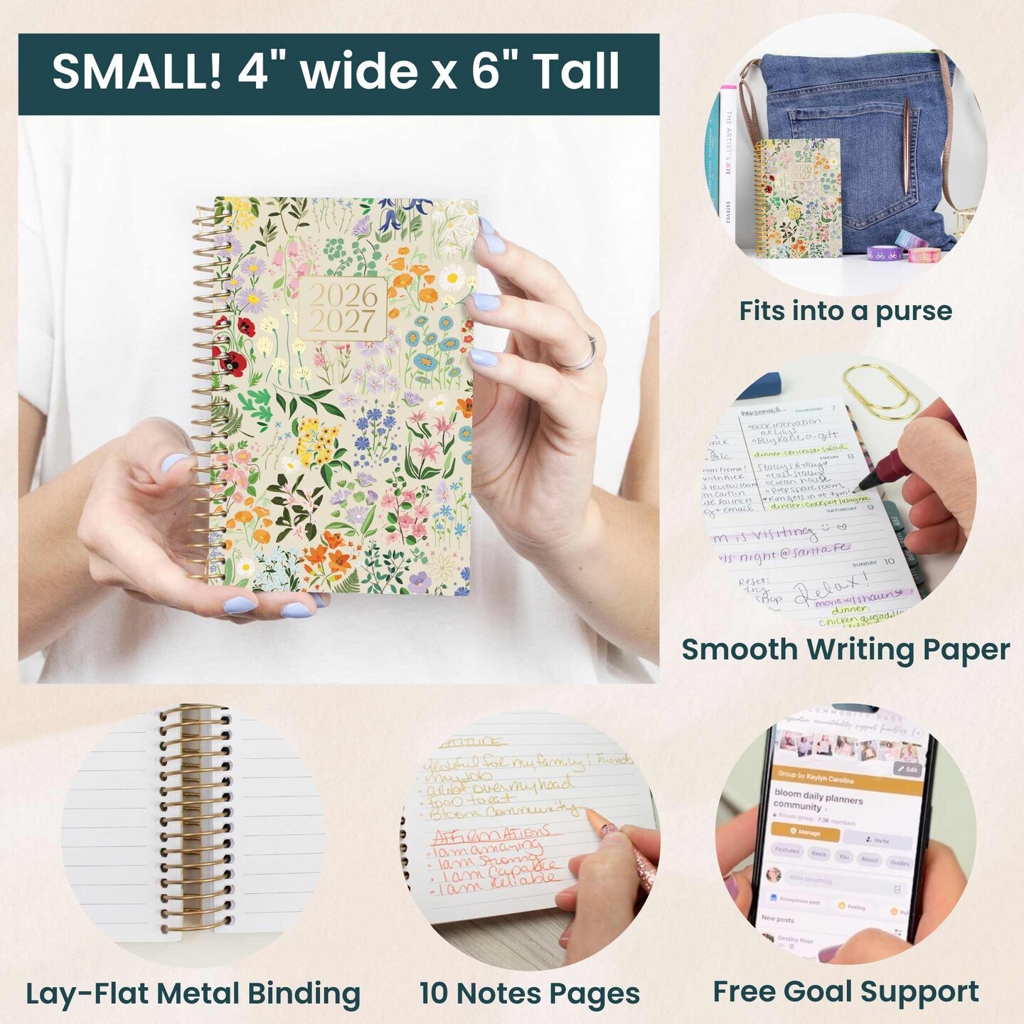 bloom daily planners 2026–2027 Academic Pocket Planner, 13 Month Monthly & Weekly, 4" x 6", Garden Party