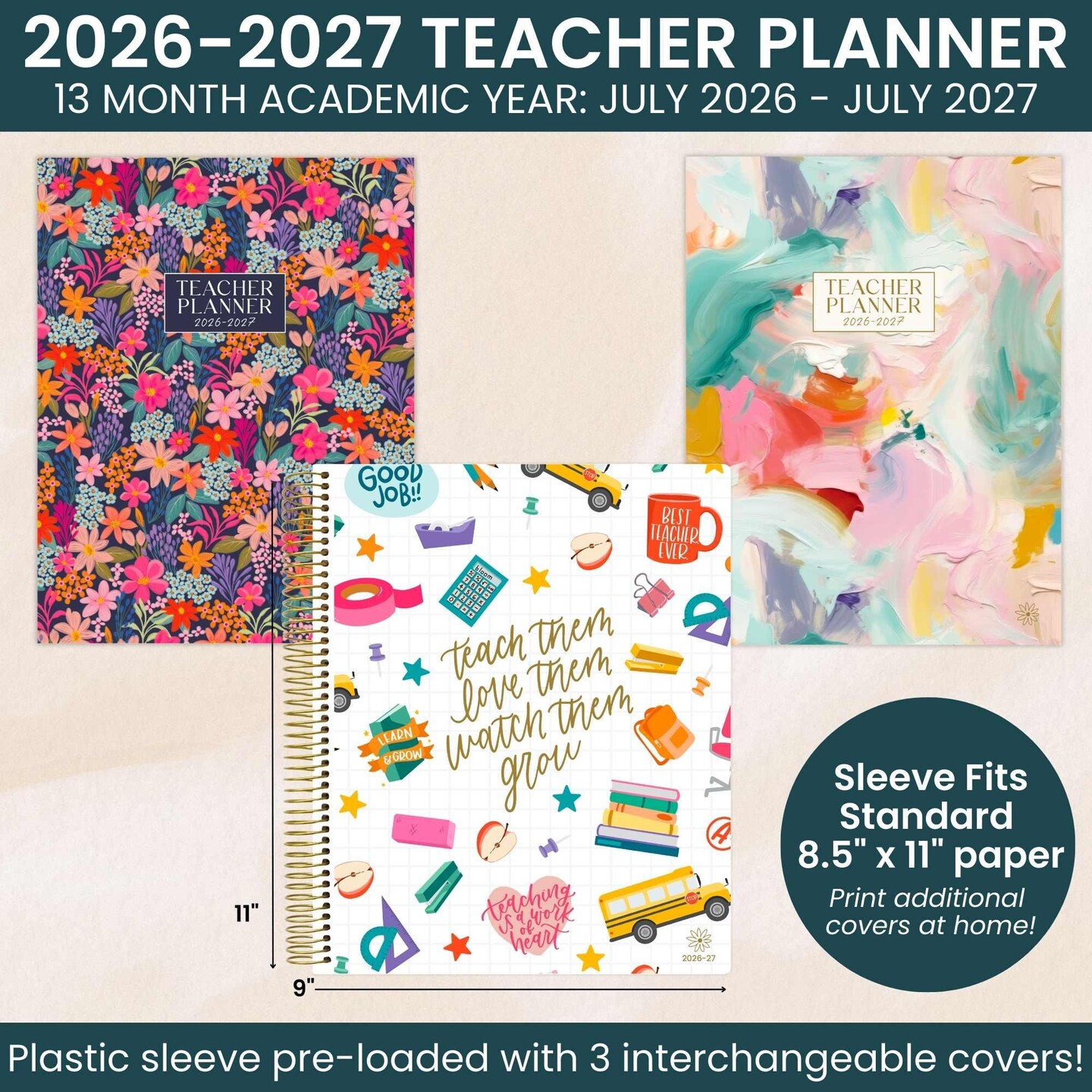 bloom daily planners 2026–2027 Teacher Planner, Bold & Bright – 7 Period Lesson Plan Book, 9" x 11", Interchangeable Cover