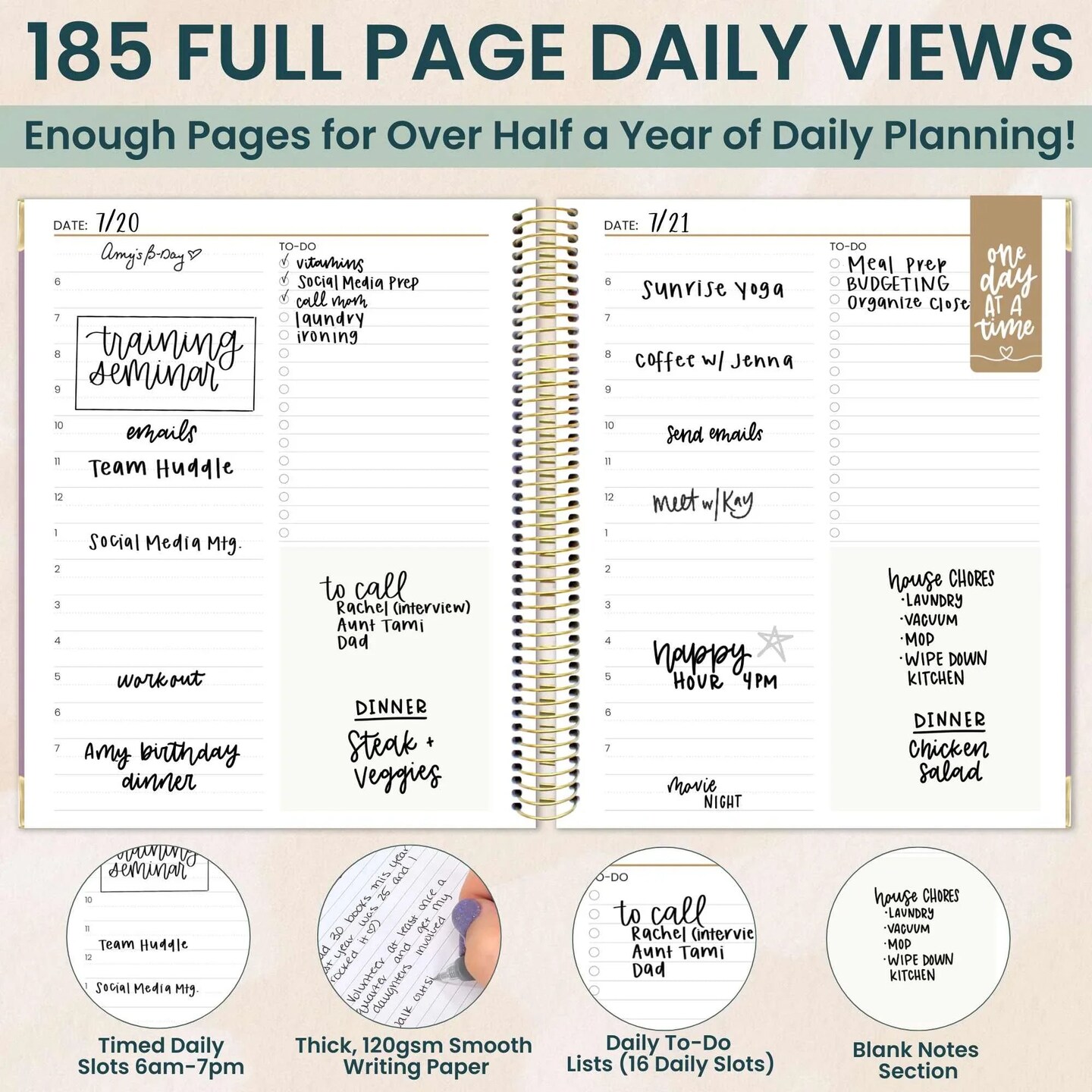 bloom daily planners 6-Month Undated Timed Daily To-Do Planner, 7” x 9”, Purple Linen
