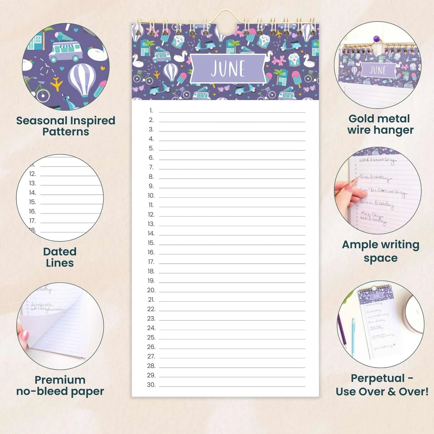 bloom daily planners Perpetual Calendar, 5" x 10", Holiday Icons