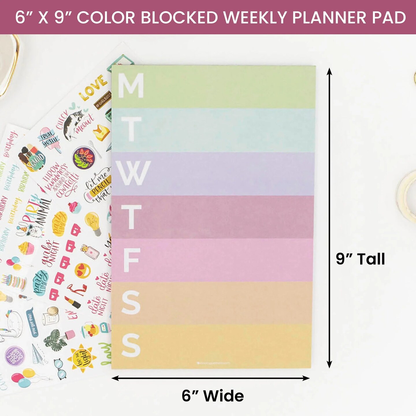 bloom daily planners Planning Pad, 6" x 9", Color Blocked Weekly Planner, Rainbow Sorbet
