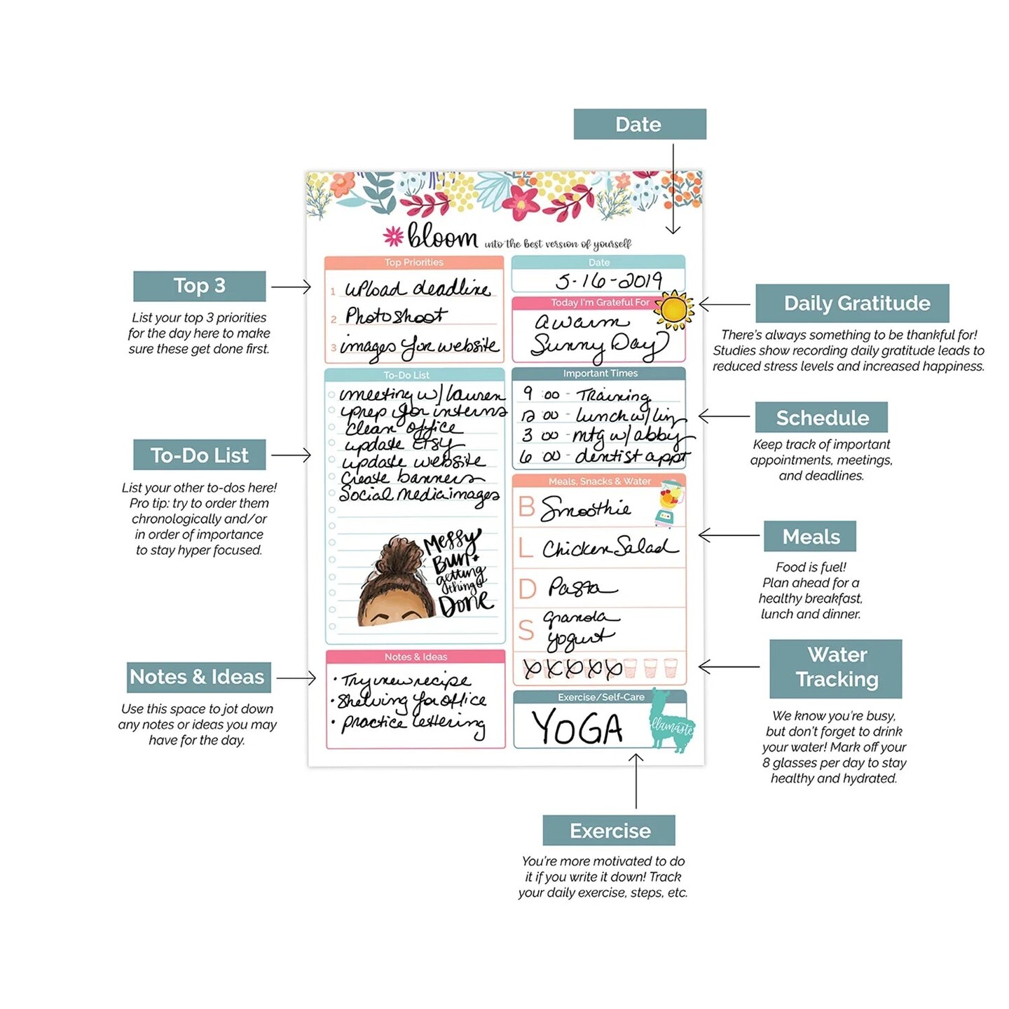 bloom daily planners Planning Pad, 6" x 9", Daily Planning System, Floral Dots