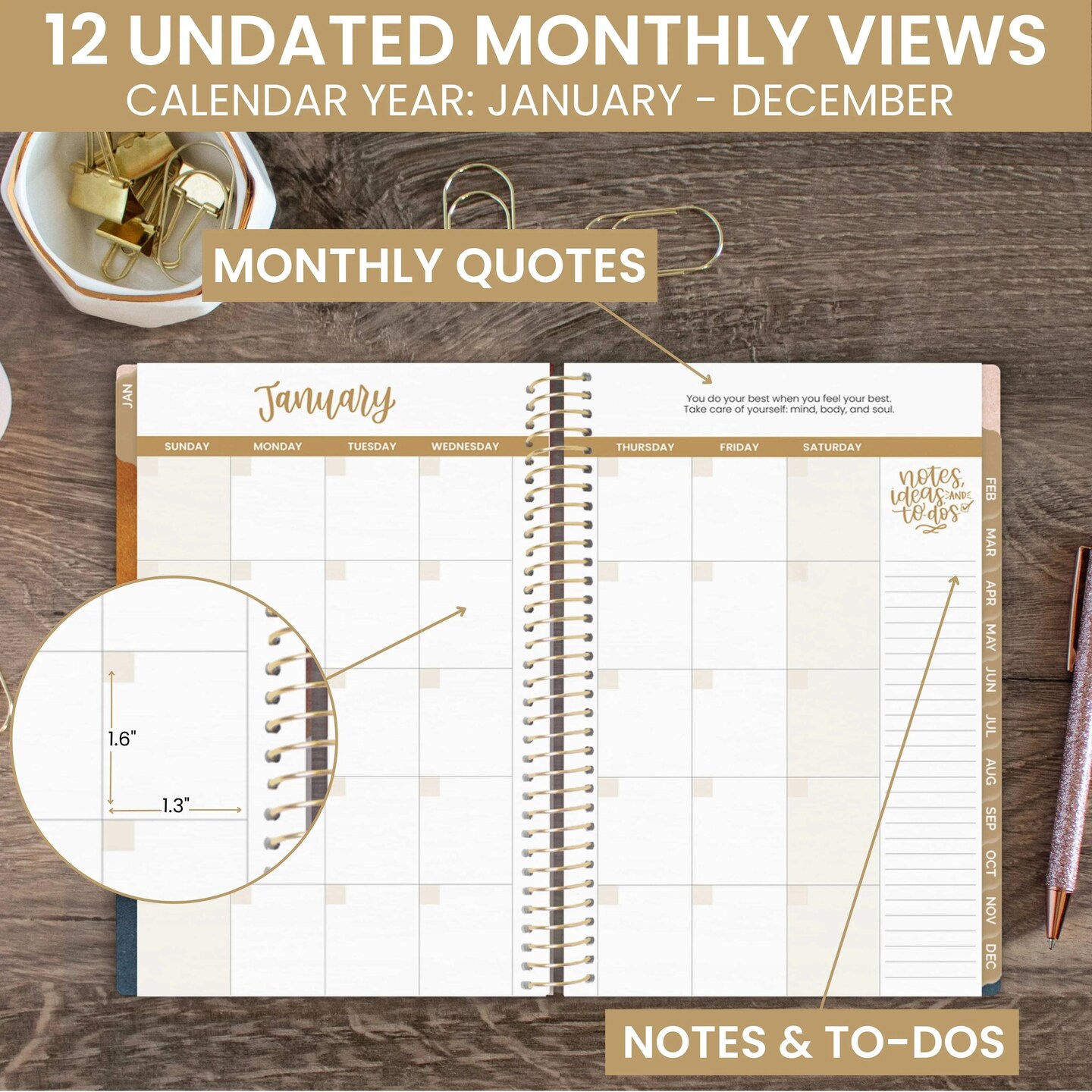 bloom daily planners Undated Soft Cover Planner, 5.5" x 8.25", Earthy Abstract, Blue