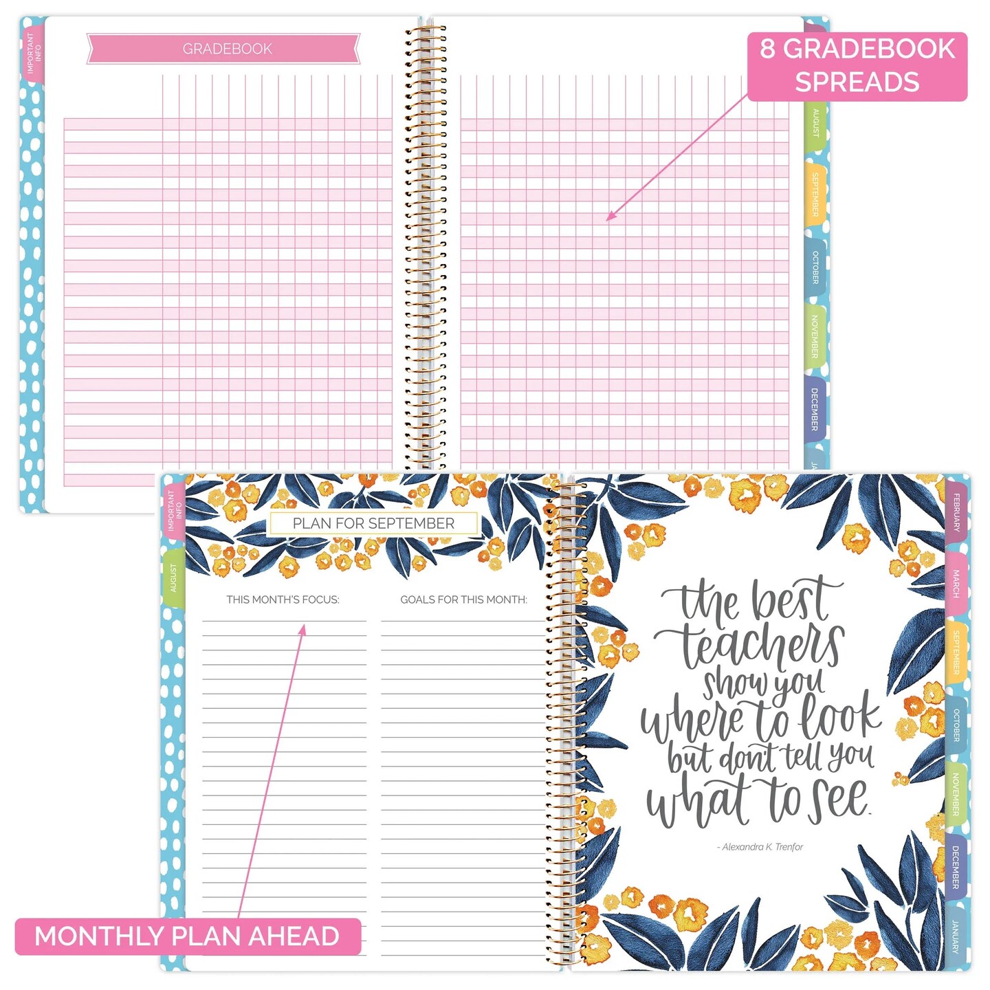 bloom daily planners Undated Teacher Planner & Calendar, Learn with Joy