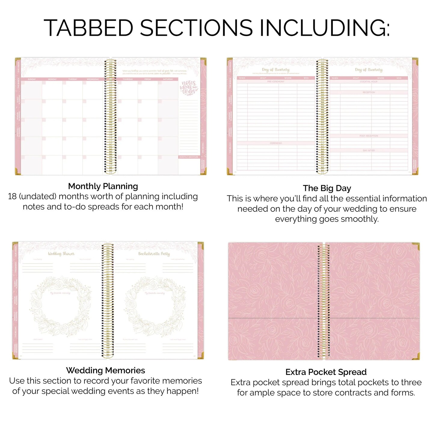 bloom daily planners Wedding Planner & Calendar, 9" x 11", Gold Floral