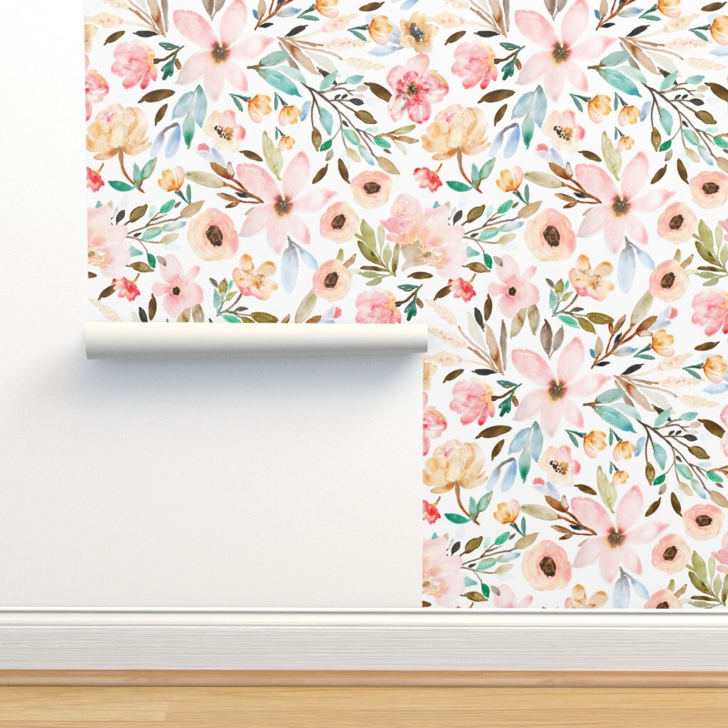 Bloom Floral Watercolor Garden Botanical Nursery Spring Kitchen Custom Removable Wallpaper by Spoonflower Peel & Stick Wallpaper 2FT Wide