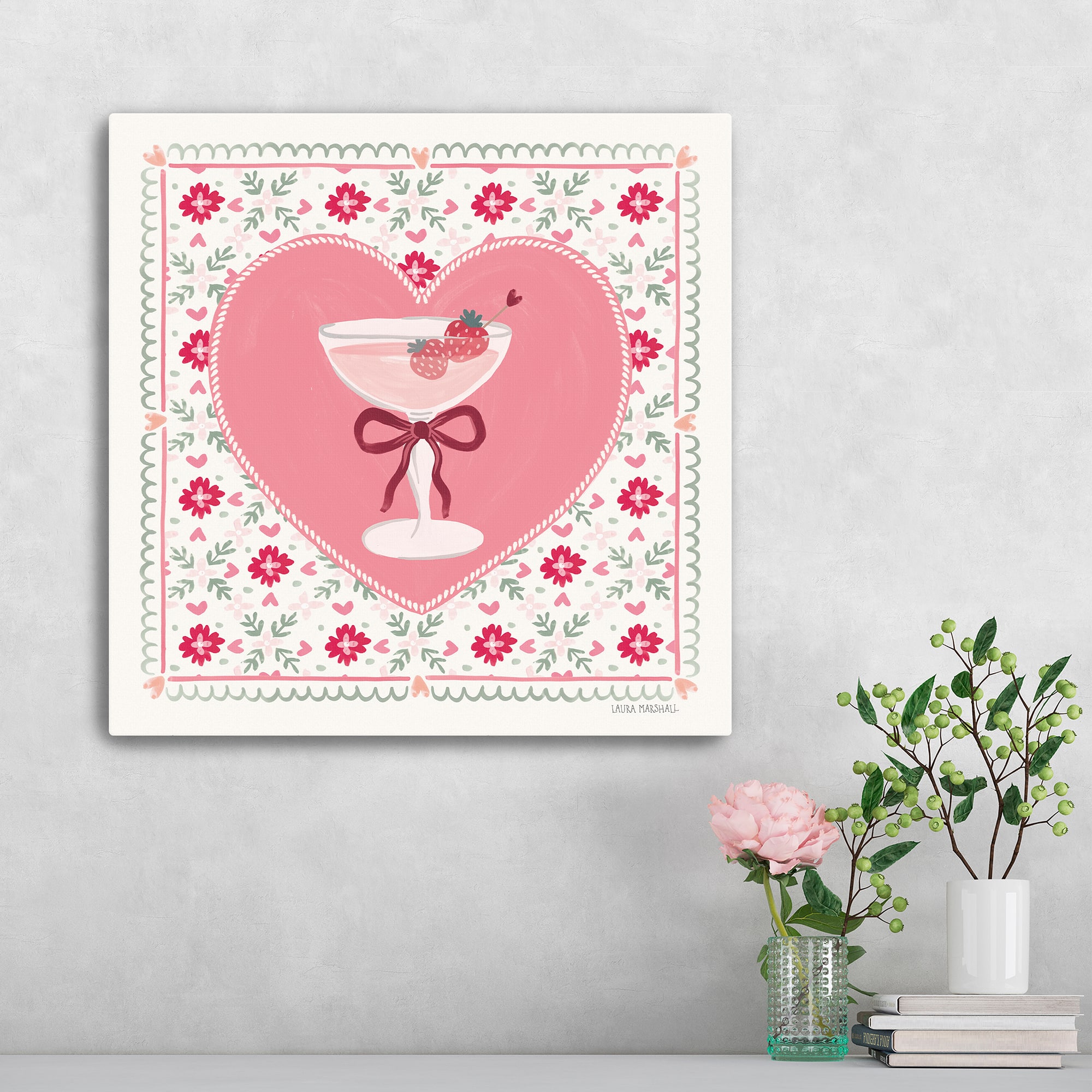 Blooming Hearts VI Cocktail Canvas Giclée Art