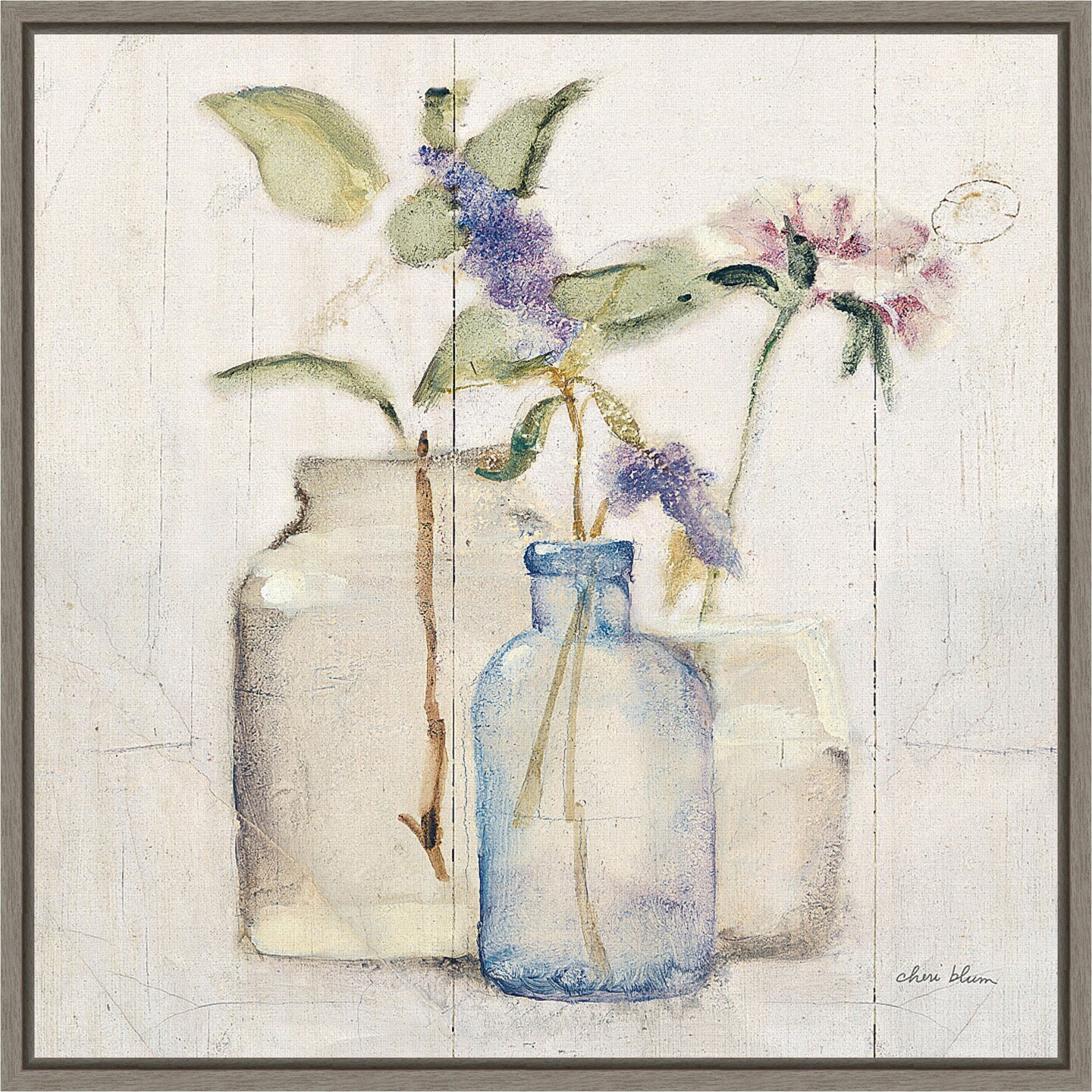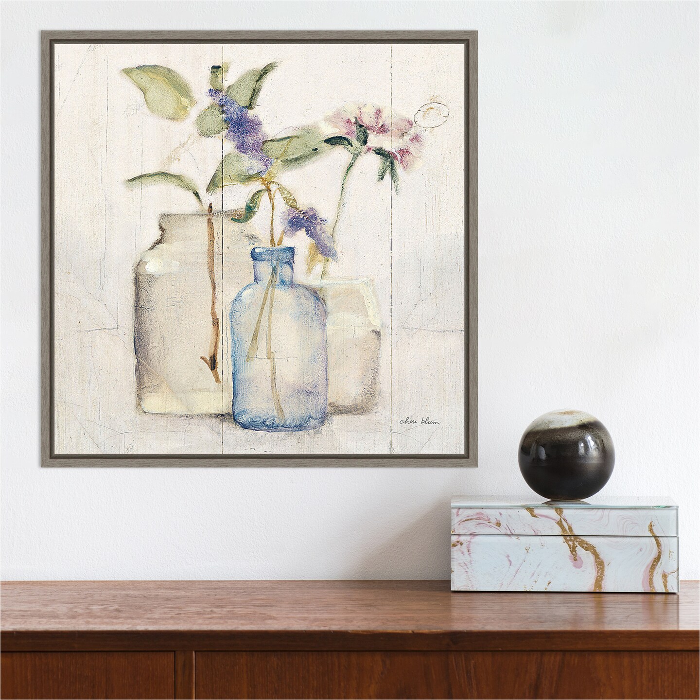 Blossoms on Birch I by Cheri Blum 16-in. W x 16-in. H. Canvas Wall Art Print Framed in Grey
