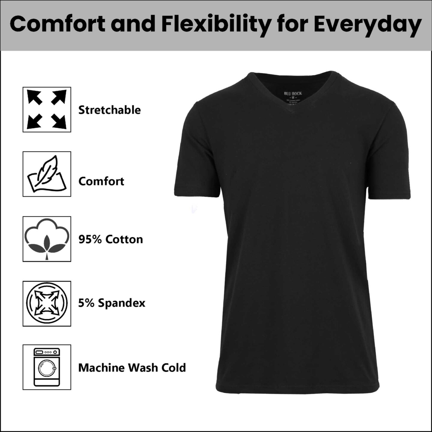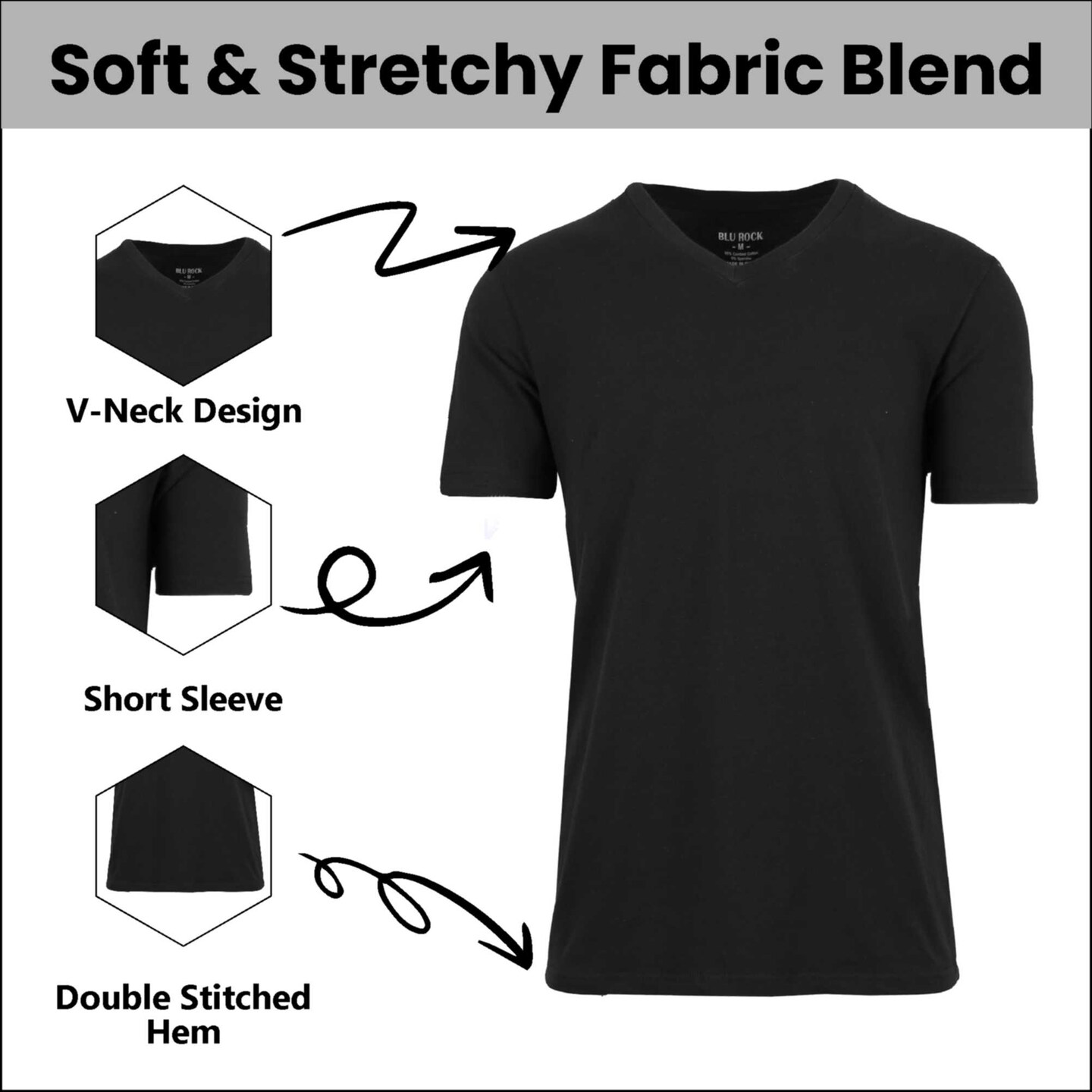 Blu Rock Men's Short Sleeve V-Neck Cotton Stretch Tee