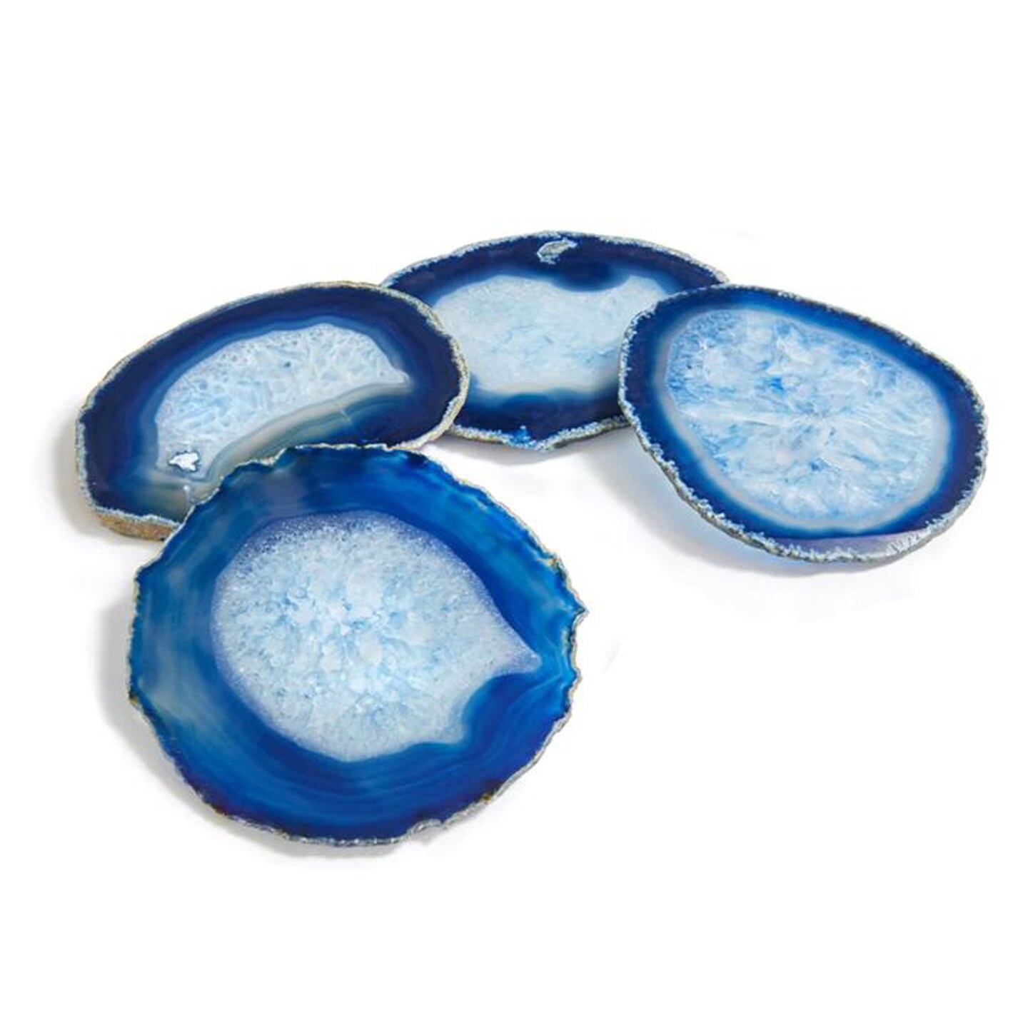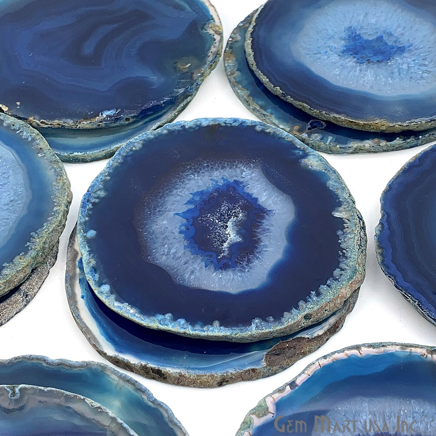 Blue Agate Coasters, Drinkware Coasters, Electroplated Agate Slice Home Décor, Agate Canvas, GemMartUSA (BLCO)