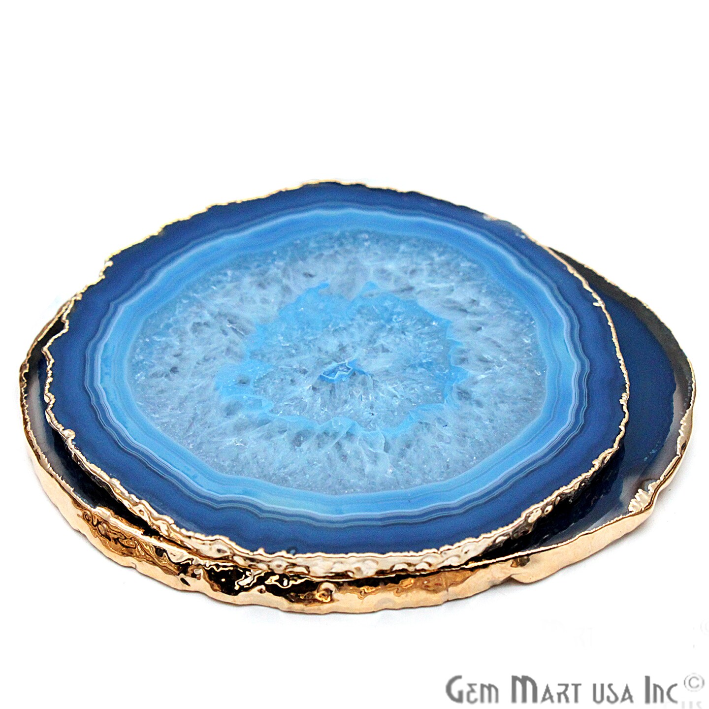 Blue Agate Coasters, Drinkware Coasters, Electroplated Agate Slice Home Décor, Agate Canvas, GemMartUSA (BLCO)