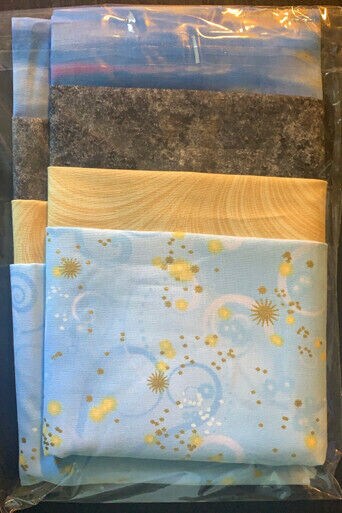 Blue and Gold Fat Quarter Four Pack Solid and Novelty Sues Creating Cottage
