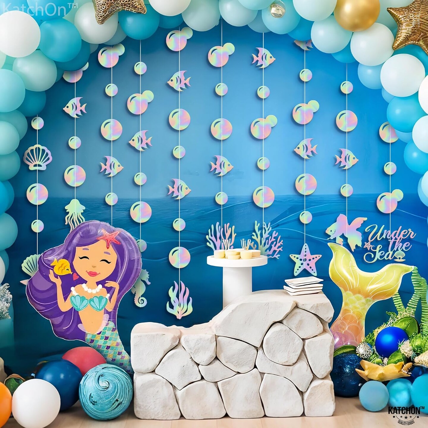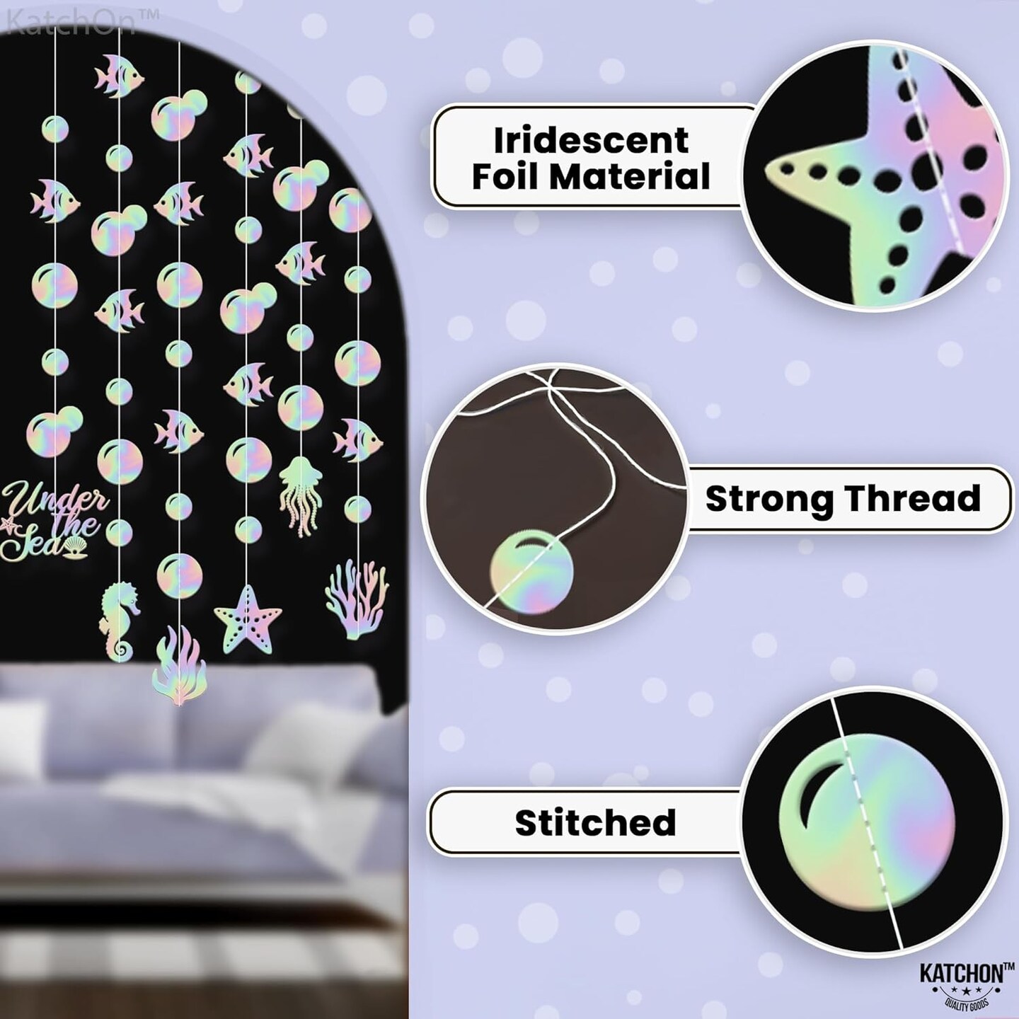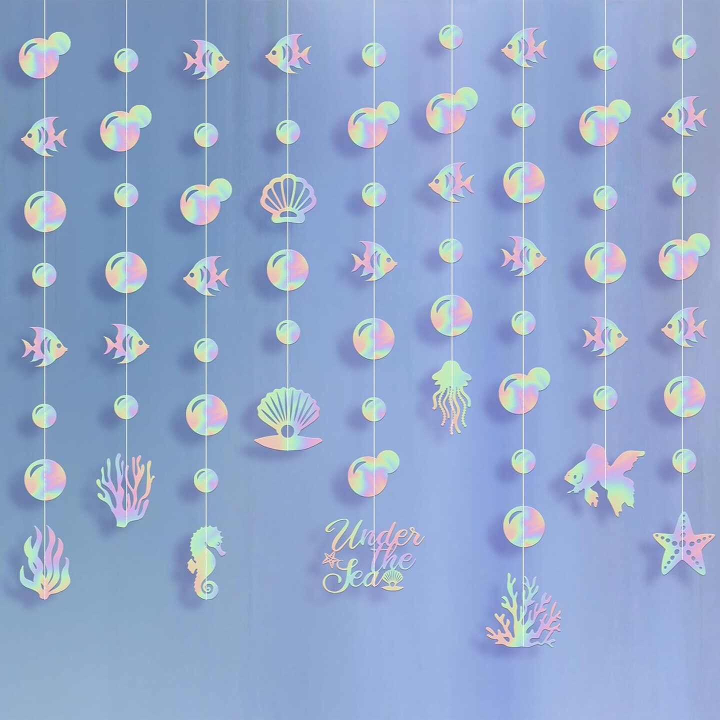 Blue and Purple Seashell Banner Garland - 8 Feet, 9 Strings
