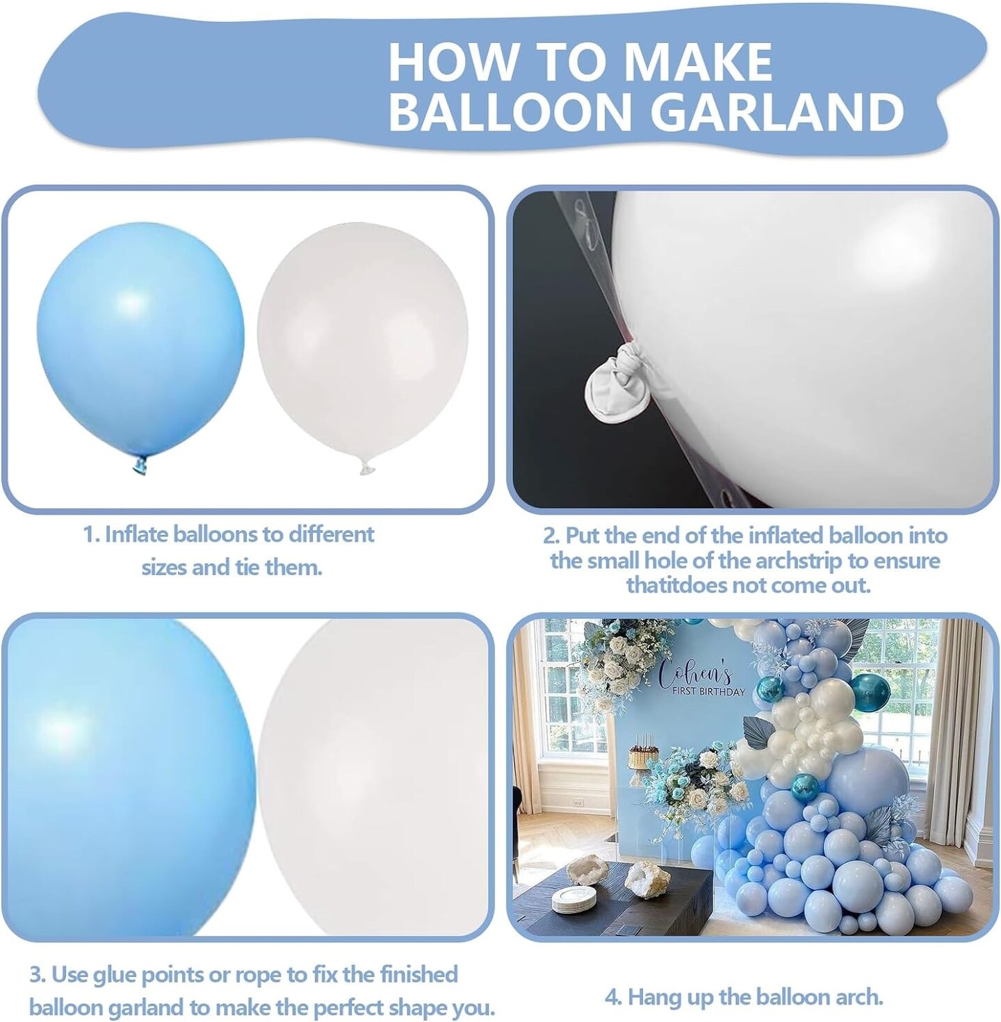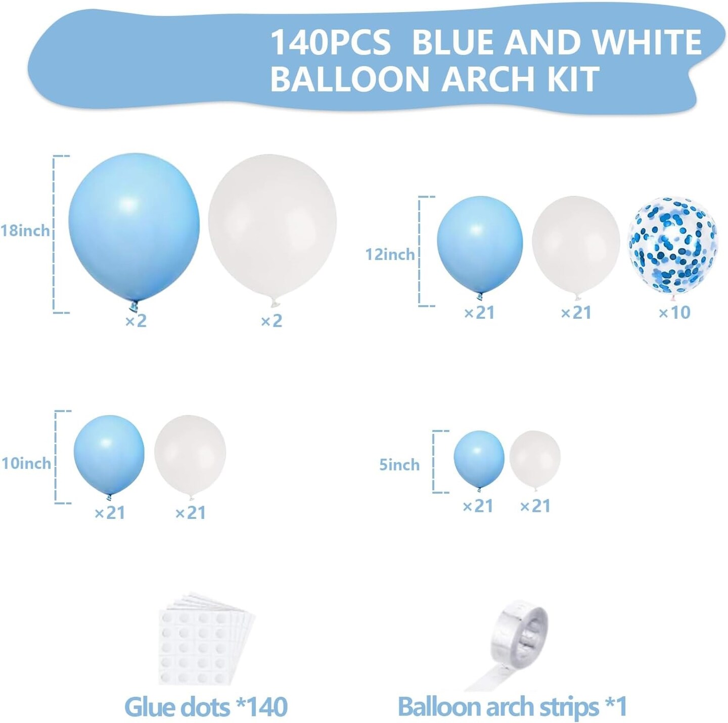 Blue and White Balloon Arch Kit, 140Pcs Pastel Light Blue and White Balloon Garland kit, 18 12 10 5 Inch Different Size Balloons for Baby Shower Birthday Gender Reveal Anniversary Decorations