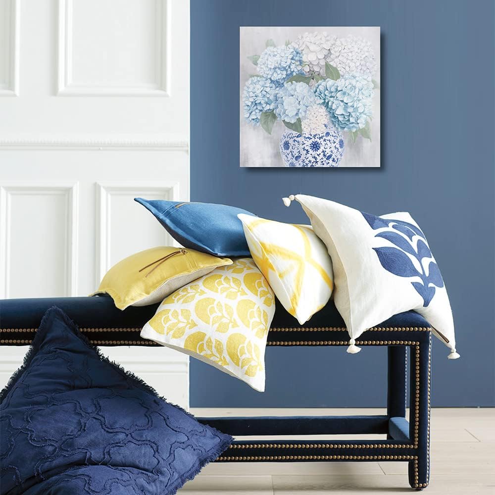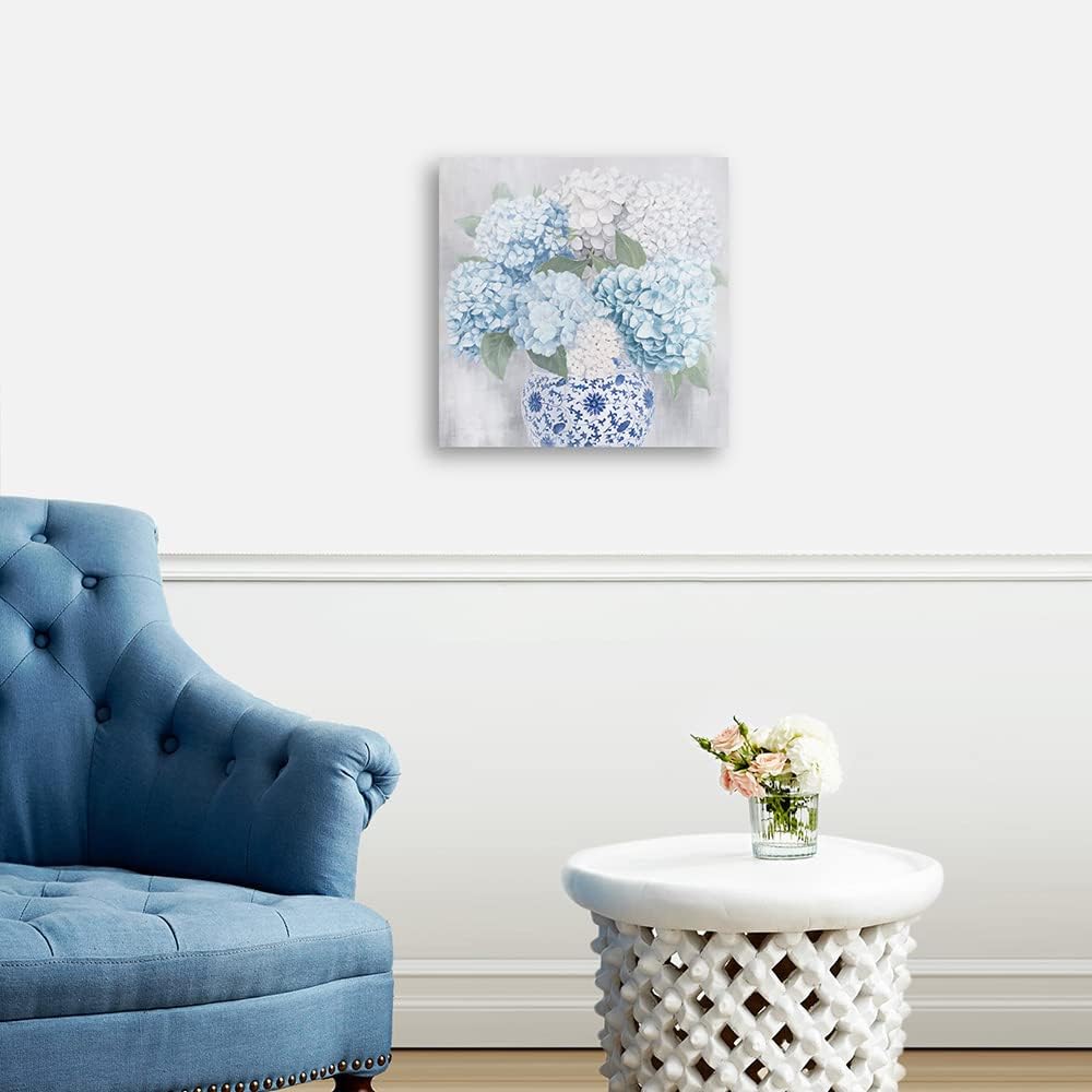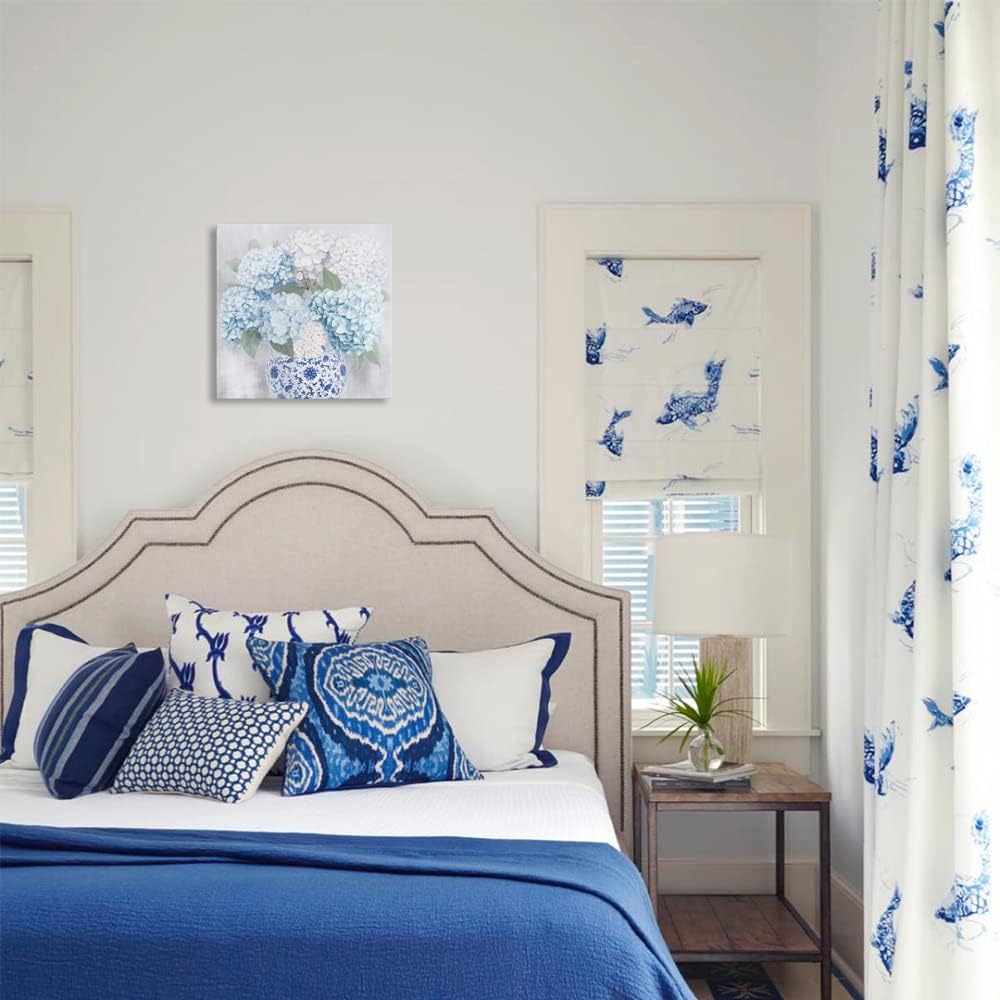 Blue and White Chinoiserie Hydrangea Canvas Wall Art
