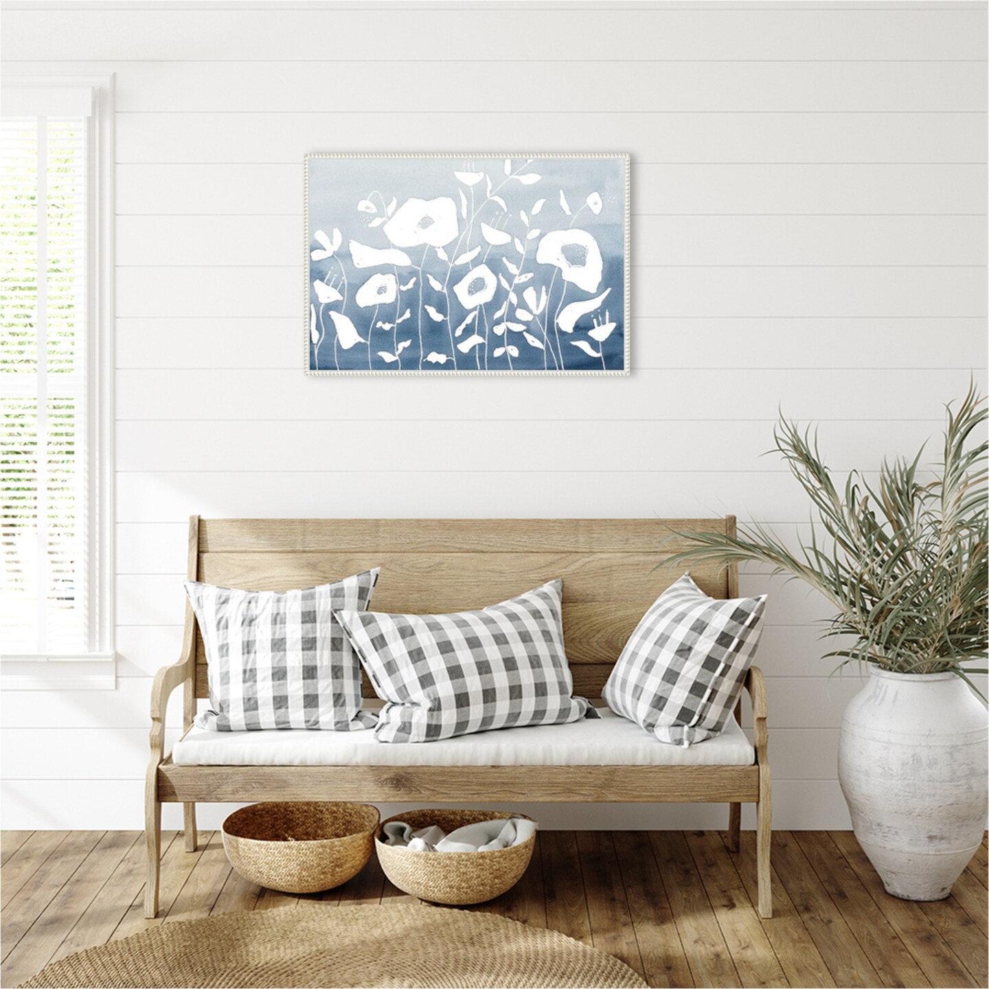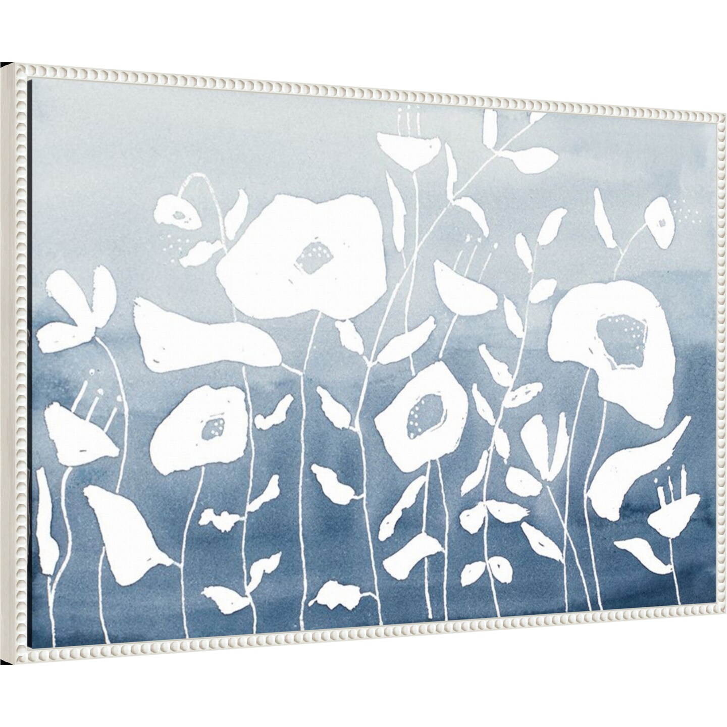 Blue And White Floral Garden by Krinlox Framed Canvas Wall Art