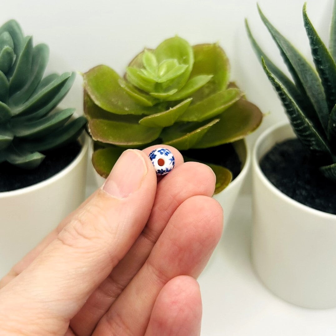 Blue and White Flower Porcelain Beads, 8x8mm