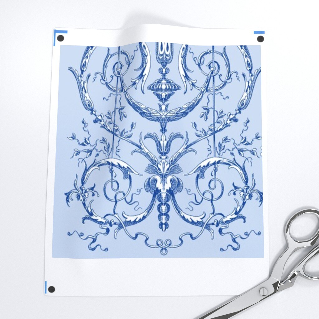 Blue And White Toile Blueberry Rococo Scrolls Toile De Jouy French Country Cottage Chic Custom Printed Fabric by Spoonflower Various Fabrics by the Yard or Fat Quarter