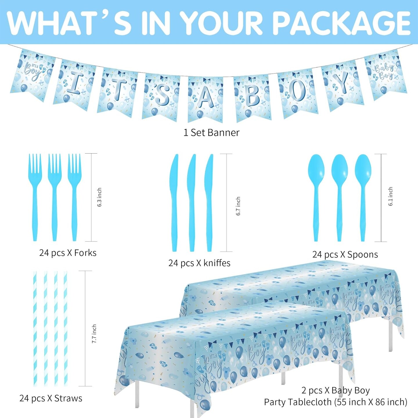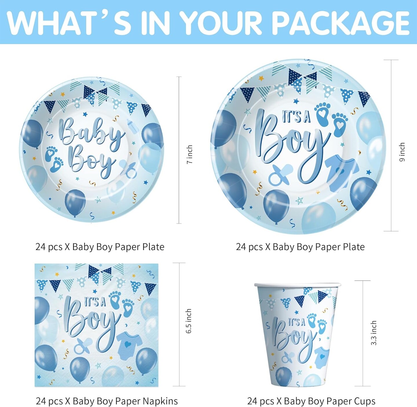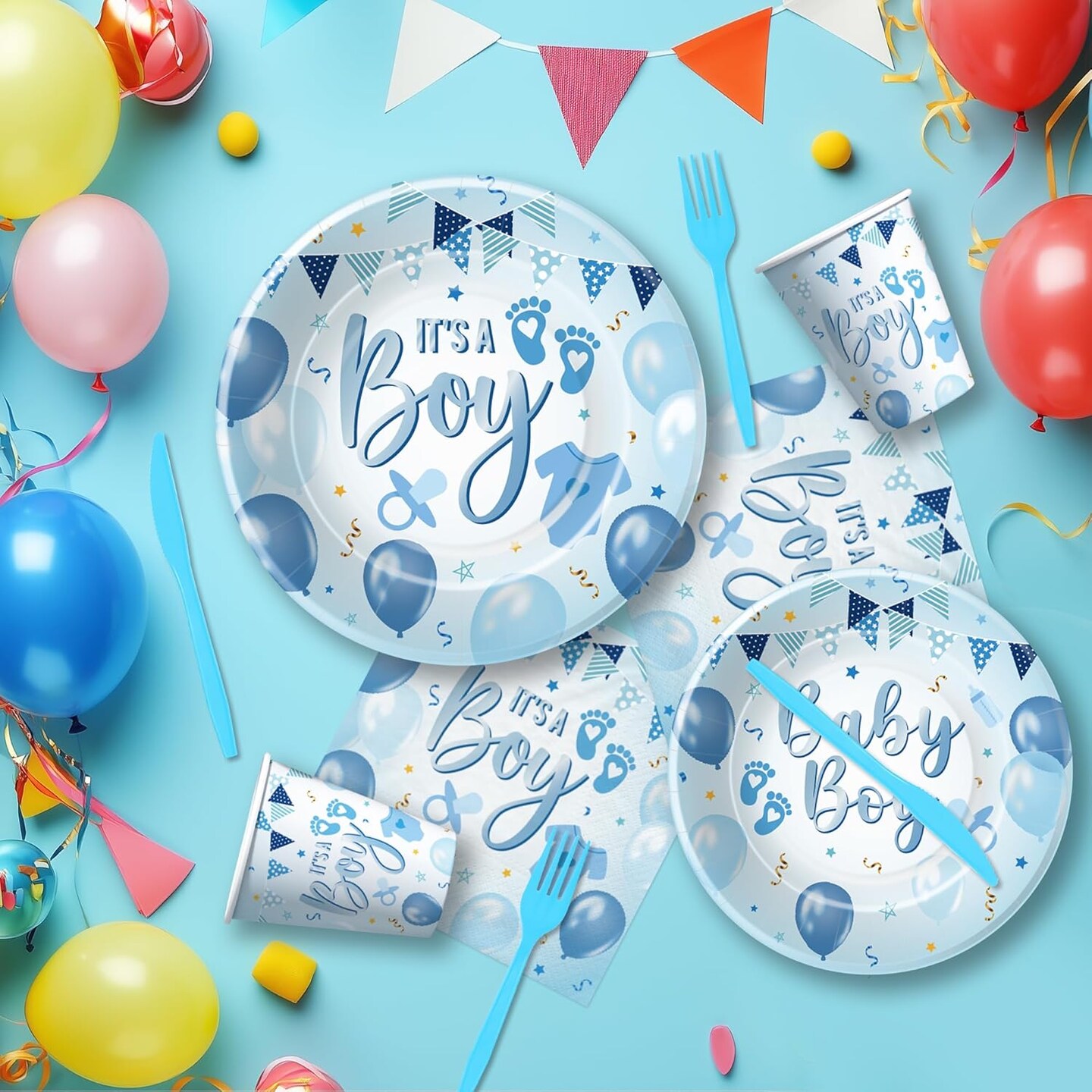 Blue Balloon Baby Shower Decorations & Tableware Set - Serves 24