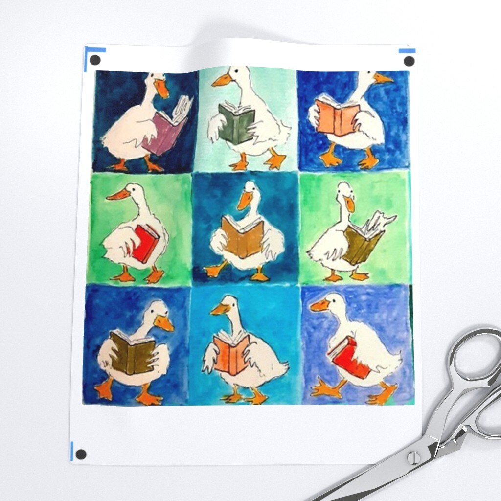 Blue Birds Animals Whimsical Books Ducks Watercolor Book Covers Reading Group Duck Readers Library Lover Large Scale Custom Removable Wallpaper by Spoonflower Peel & Stick Wallpaper 2FT Wide