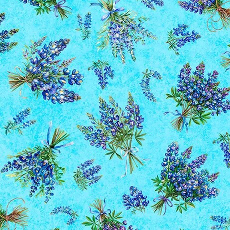 Blue Bluebonnet Bouquets Cotton 44"/45" Fabric Per Yard