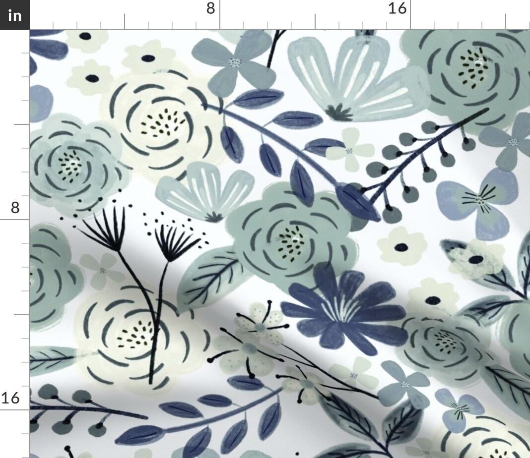 Blue Boho Floral Sage Green Floral Wilderness Large Scale Navy Custom Printed Fabric by Spoonflower Various Fabrics by the Yard or Fat Quarter