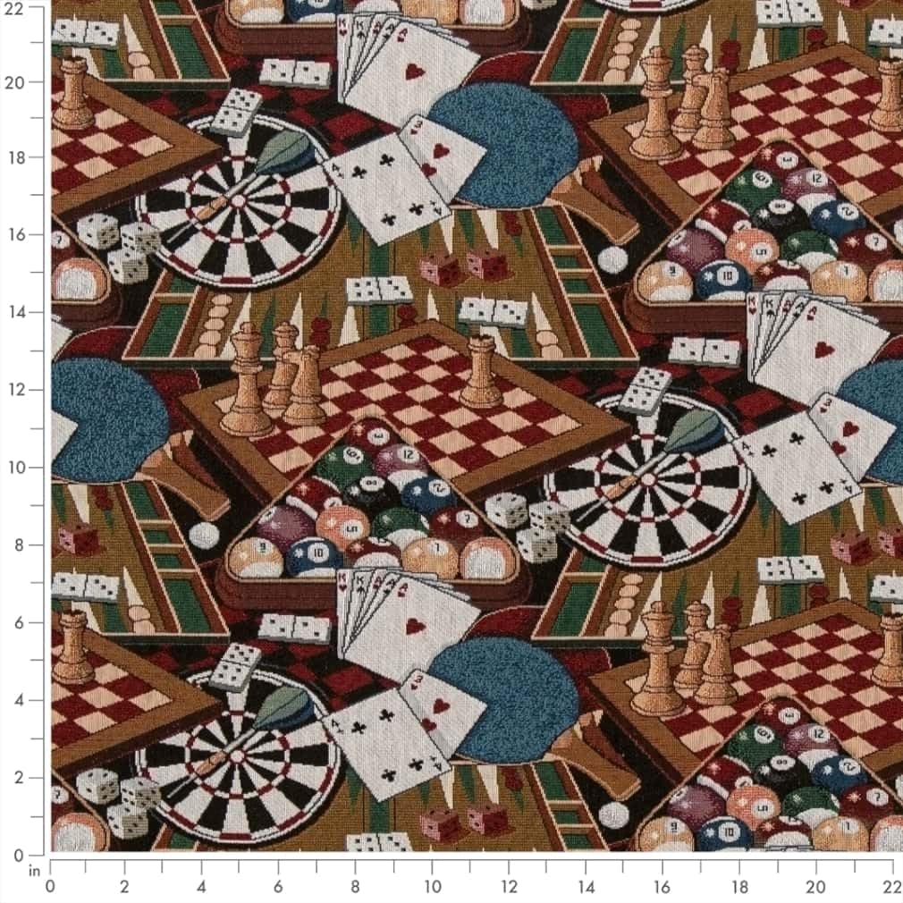 Blue Brown Orange Made in America Novelty Tapestry Woven Pattern Upholstery Fabric by The Yard - SKU: Isaac Billiard