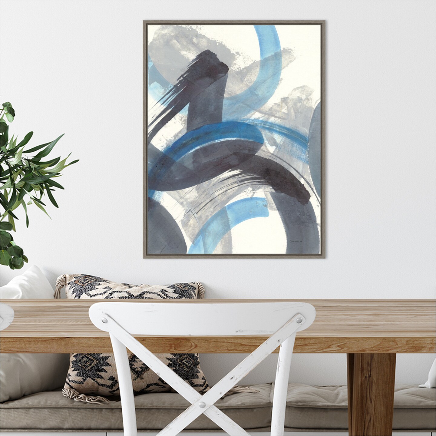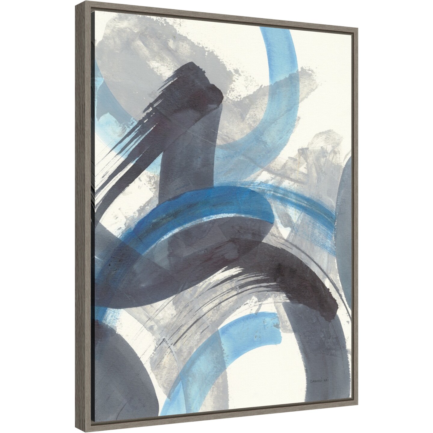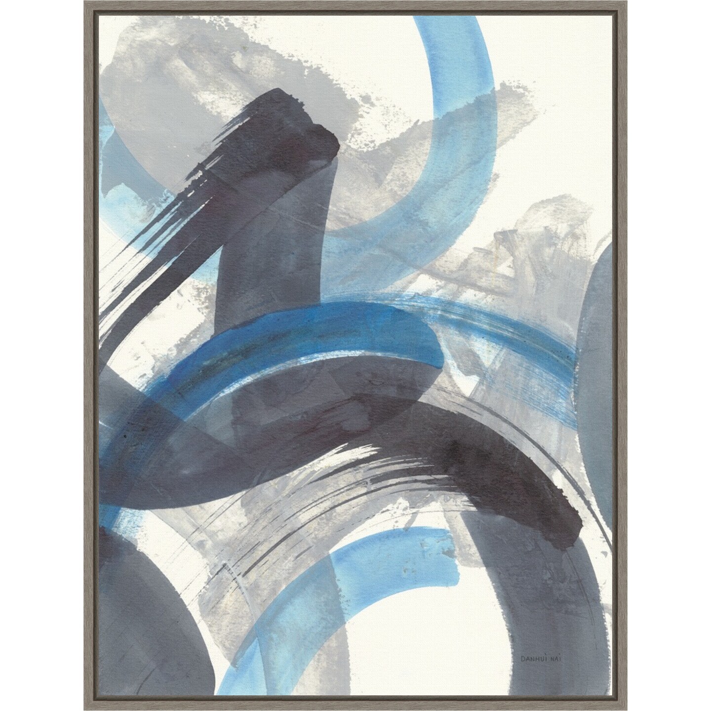 Blue Brushy Abstract II by Danhui Nai 18-in. W x 24-in. H. Canvas Wall Art Print Framed in Grey