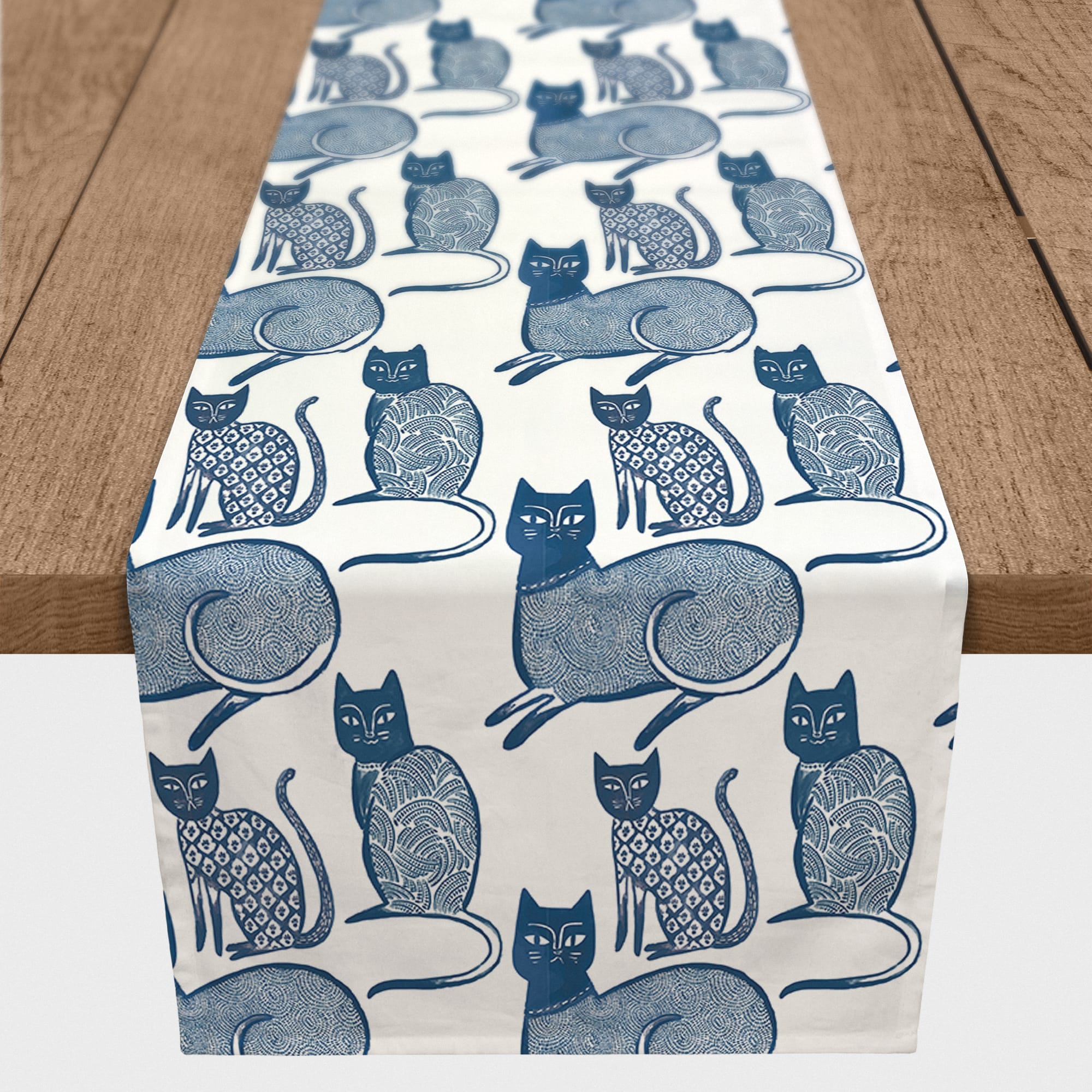 Blue Cat Pattern 16" x 72" Cotton Twill Runner