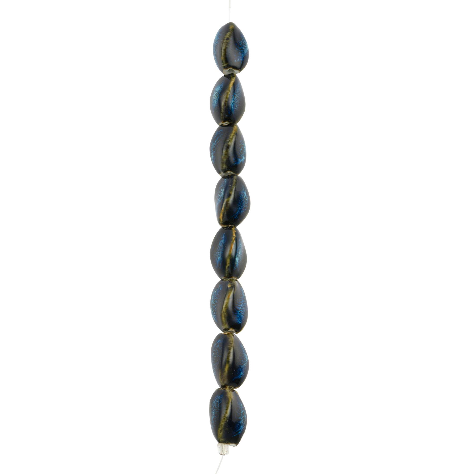Blue Ceramic Twisted Oval Beads, 20mm by Bead Landing™