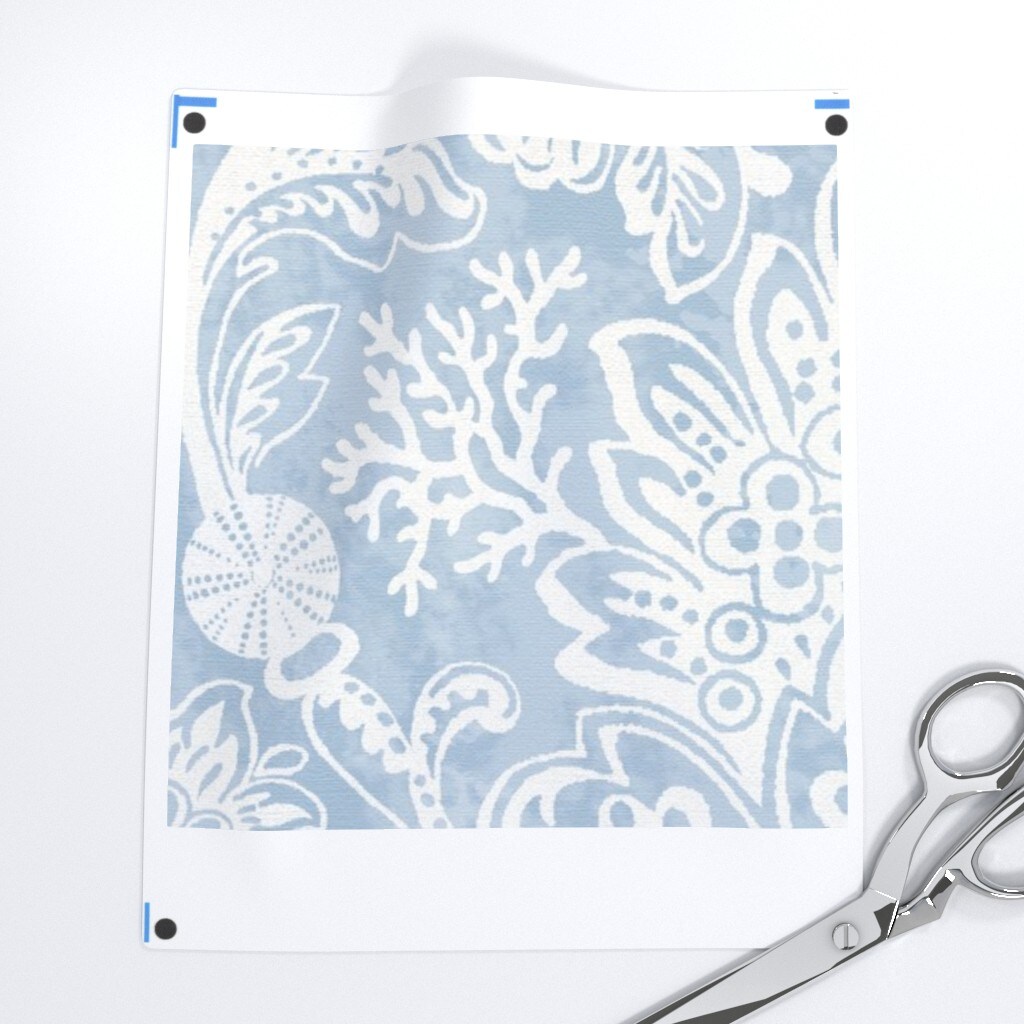 Blue Coastal Damask Seashells Beach Ocean Traditional Serene Botanical Custom Printed Fabric by Spoonflower Various Fabrics by the Yard or Fat Quarter